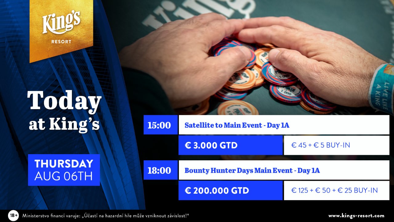 Heute wird es im King’s dann sicher noch ein wenig voller, denn es steht um 18 Uhr der erste Starttag des €125+€50+€25 Bounty Hunter auf dem Spielplan. Zuvor findet um 15 Uhr noch ein Satellite für €50 statt.