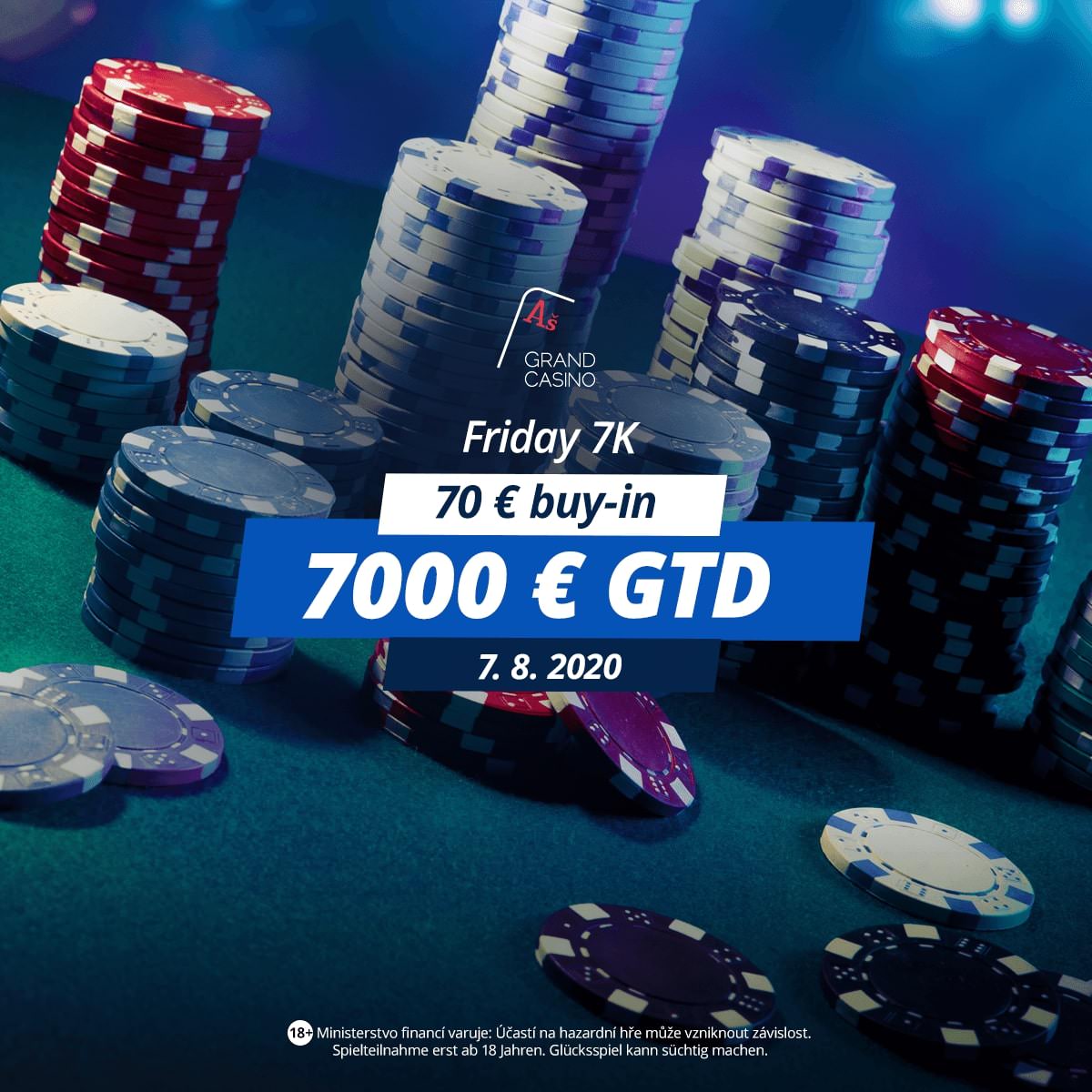 Am Freitag steht um 20:00 Uhr das €63+€7 Friday 7k Event auf dem Programm, bei dem ein Preisgeld von €7.000 garantiert wird. Es geht los mit 20.000 in Chips und jeder Level dauert 20 Minuten. Zwei Re-Entries sind möglich und die Late-Registration ist für acht Level geöffnet.