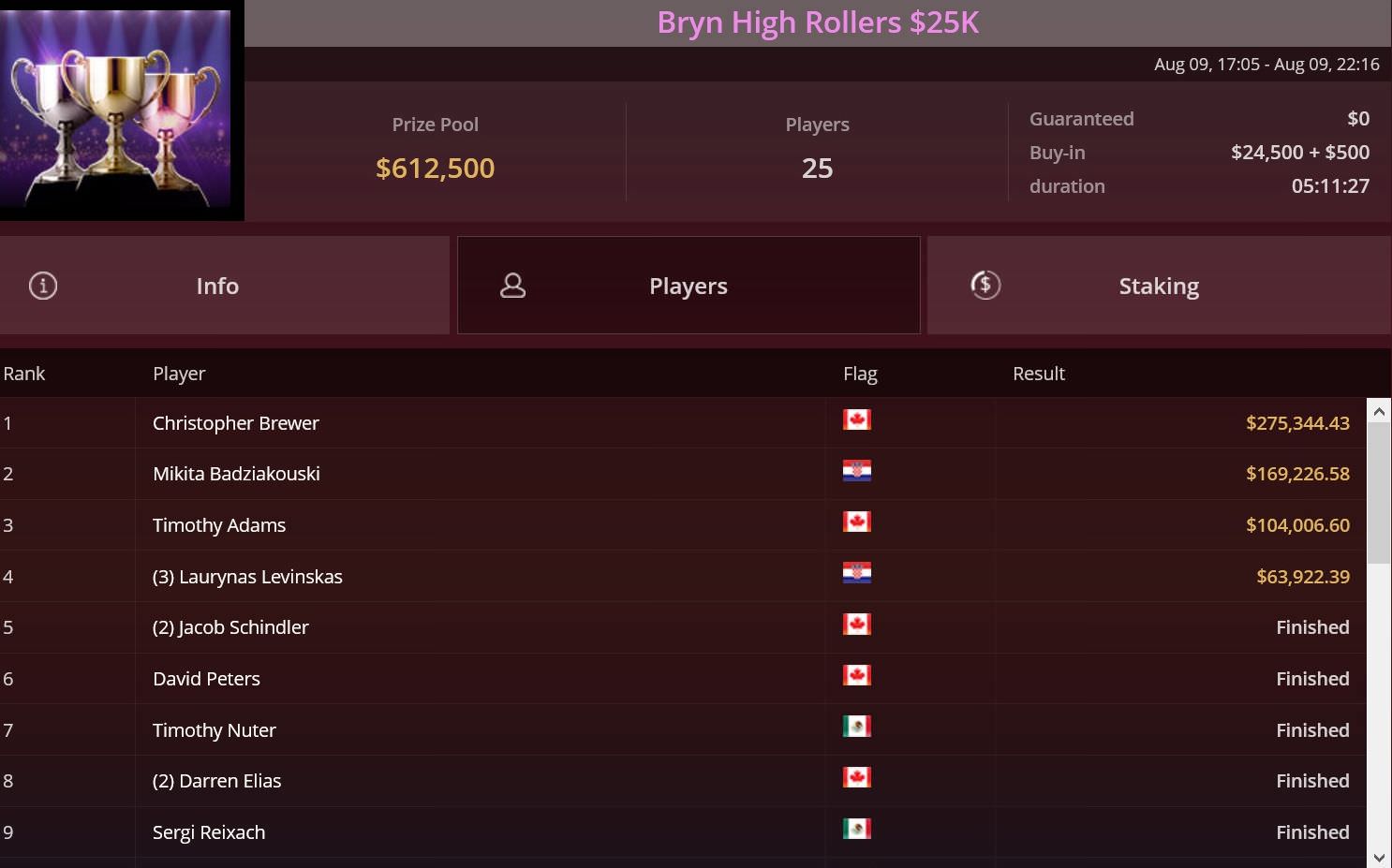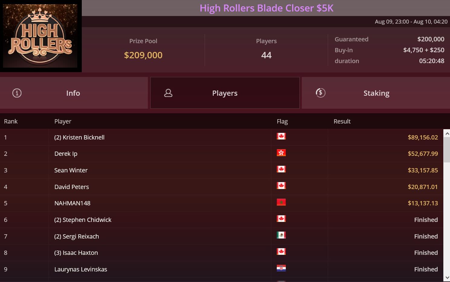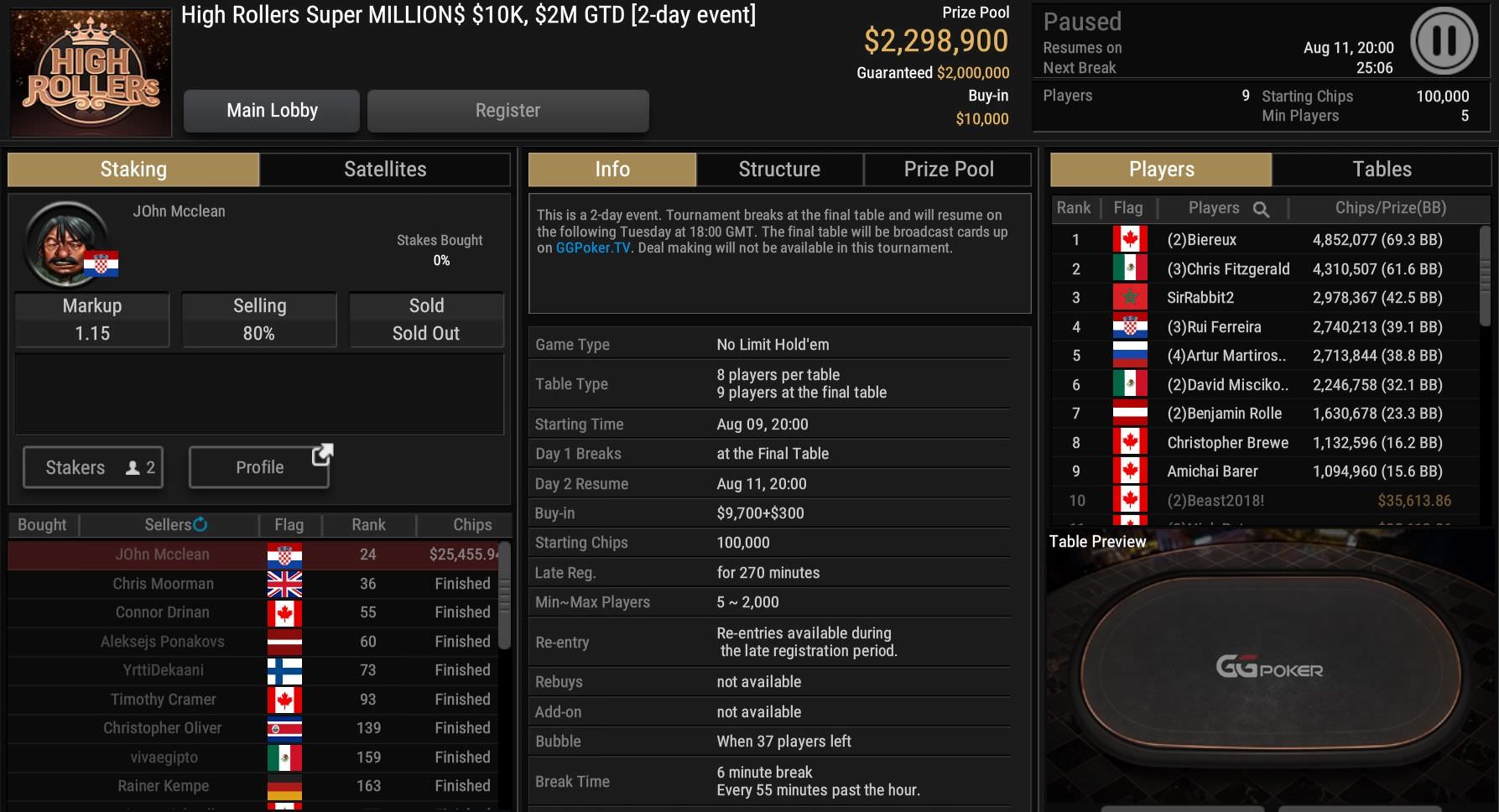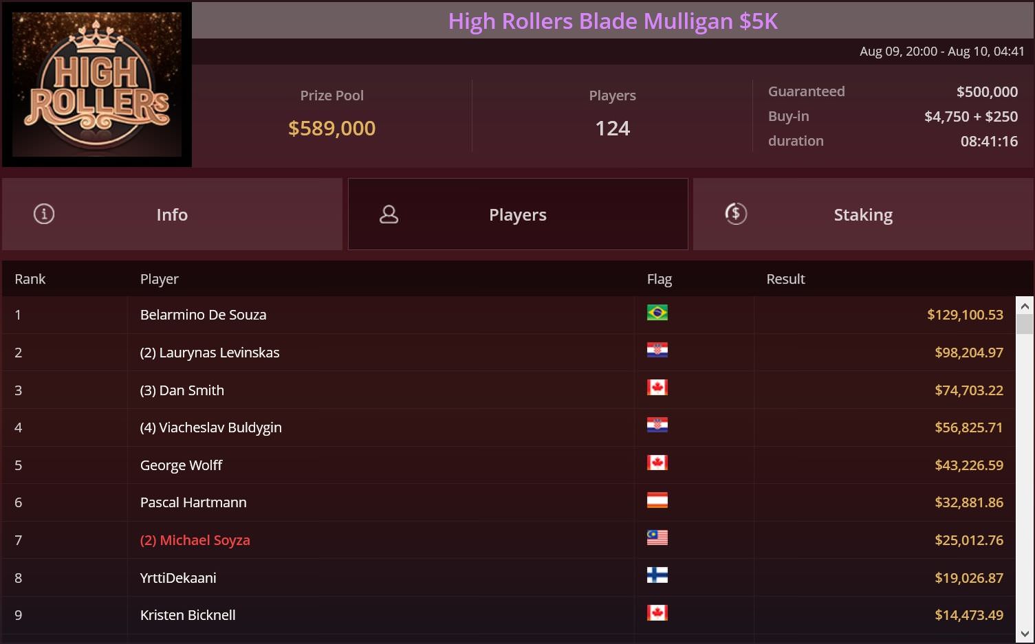 Und auch von den High Rollers Super MILLION$ gibt es gute Nachrichten, denn Benjamin Rolle erreichte als Siebter den Finaltisch und hat morgen mit 23,8 BB noch alle Chancen auf die Siegprämie von über $442.000.