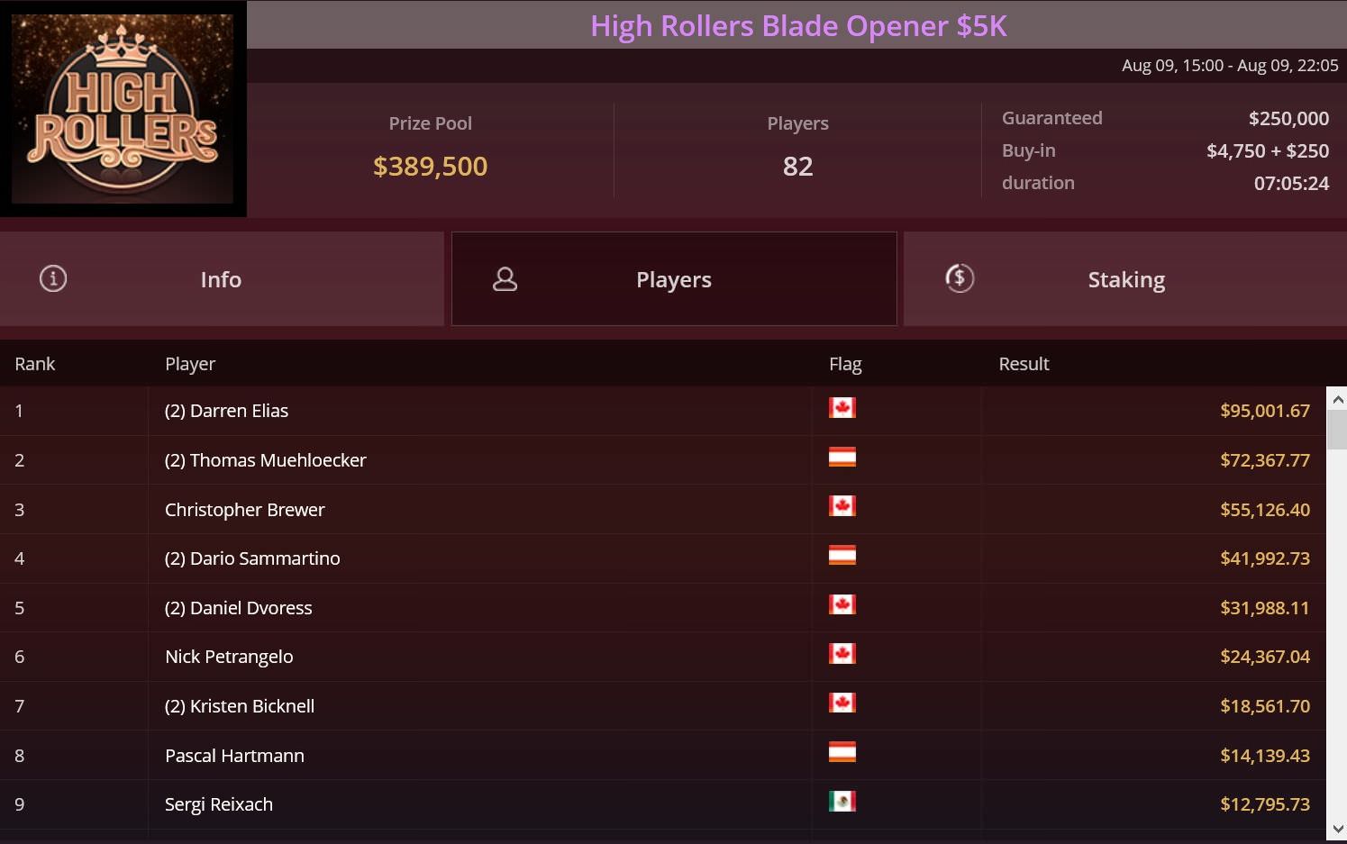 Einen starken zweiten Platz belegte Thomas Mühlöcker beim $5.000 High Rollers Blade Opener. Gut $77.000 gingen an den Österreicher, Sieger Darren Elias kassierte sogar über $95.000.