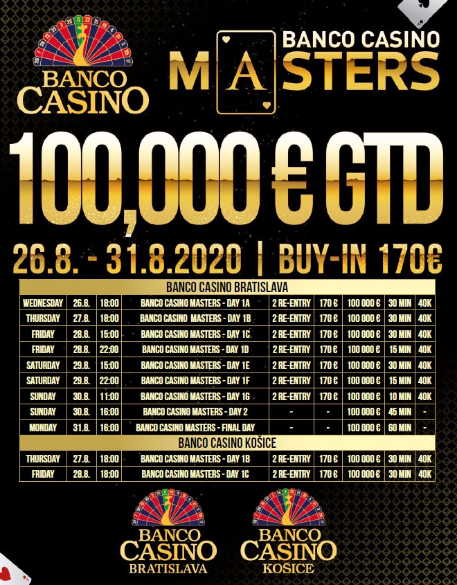 Vor rund einem Monat wurden beim beliebten Banco Casino Masters im Banco Casino Bratislava fantastische Spielerzahlen erreicht und über €140.000 an Preisgeldern ausgespielt. Der ein oder andere Spieler wird sich sicherlich ärgern dieses Turnier verpasst zu haben, aber die nächste Möglichkeit ist nur noch wenige Tage entfernt.