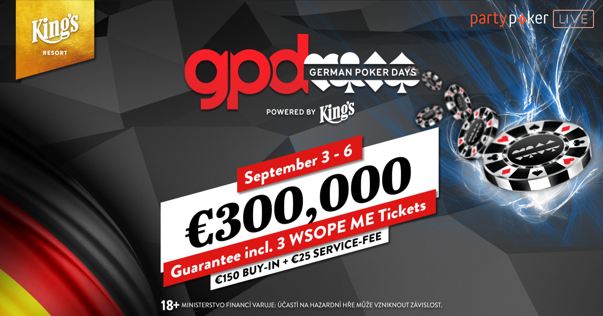 Gleich zum Auftakt wartet mit der neuen Ausgabe der German Poker Days (3. bis 6. September) ein echter Knaller. Das Buy-in für den Main Event kostet gerade einmal €175, der garantierte Preispool liegt dagegen bei satten €300.000.