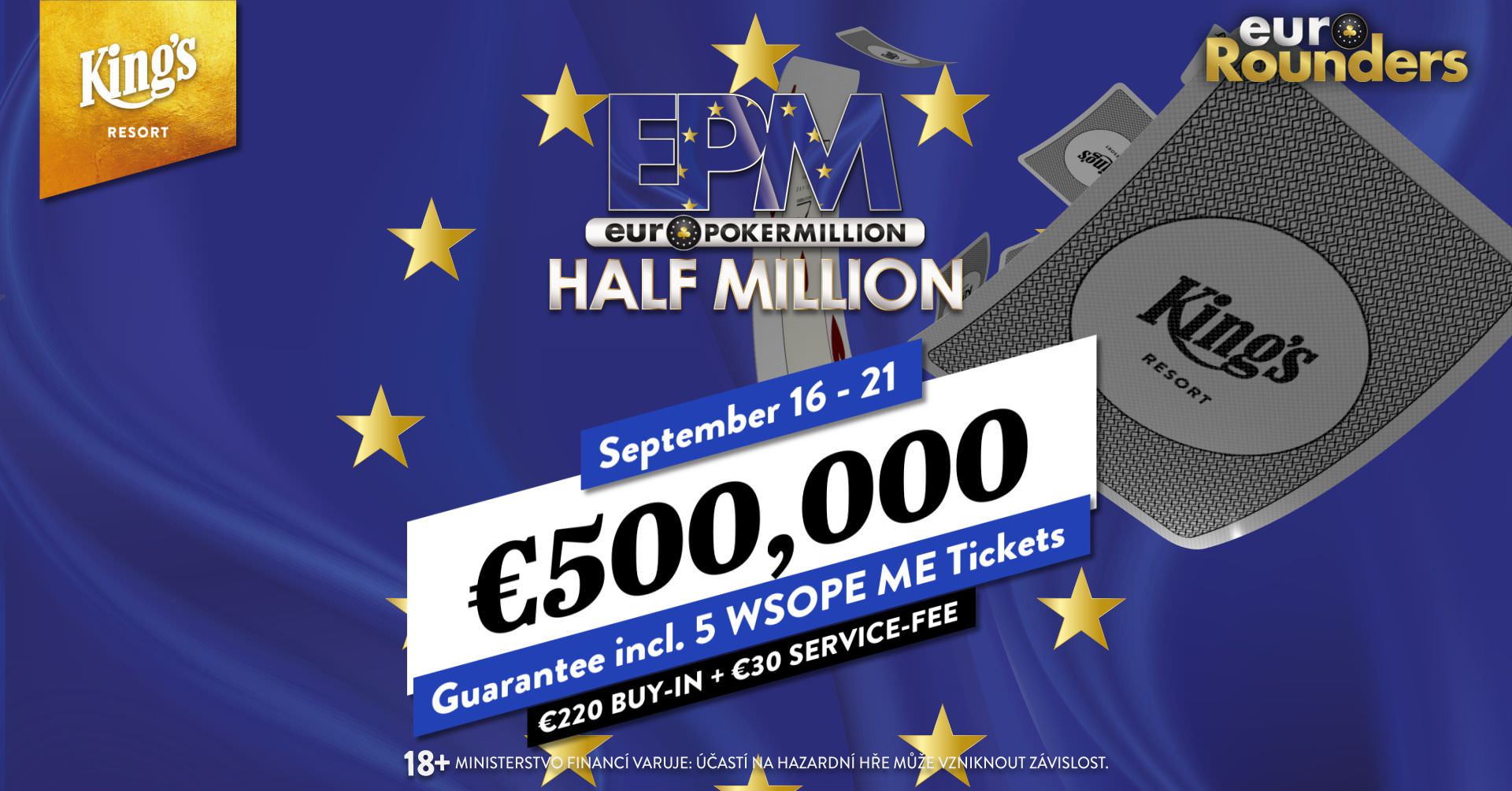 Eine weitere Steigerung des Buy-in gibt es dann bei der EPM EUROPOKERMILLION (16. bis 21. September). Für den EPM HALF MILLION Main Event werden €250 fällig, dafür werden aber auch €500.000 garantiert. Auch für dieses Turnier sind drei Spieltage angesetzt.