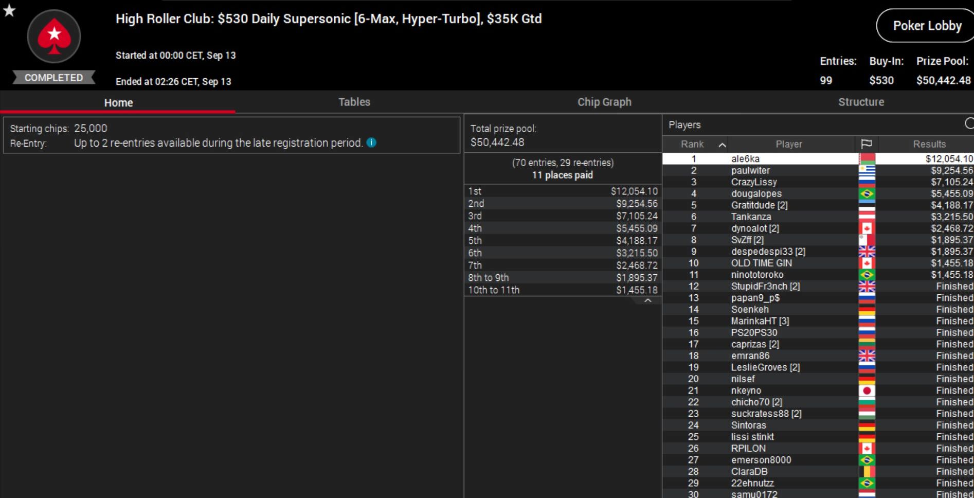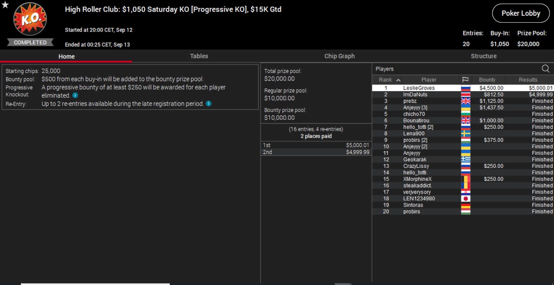 Bei den beiden weiteren Turnieren des High Roller Clubs gingen die deutschsprachigen Spieler um Dominik „bounatirou“ Nitsche leer aus. Siege gab es stattdessen für Aliaksai „ale6ka“ Boika und „LeslieGroves“ aus Russland.