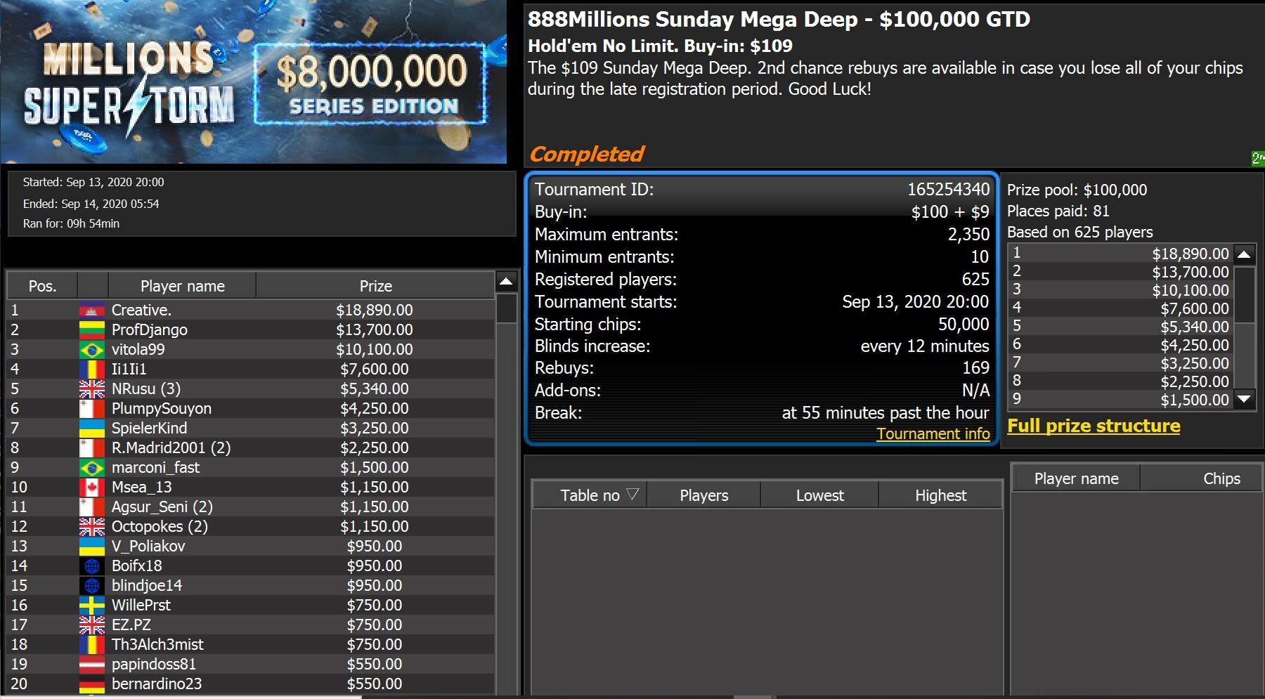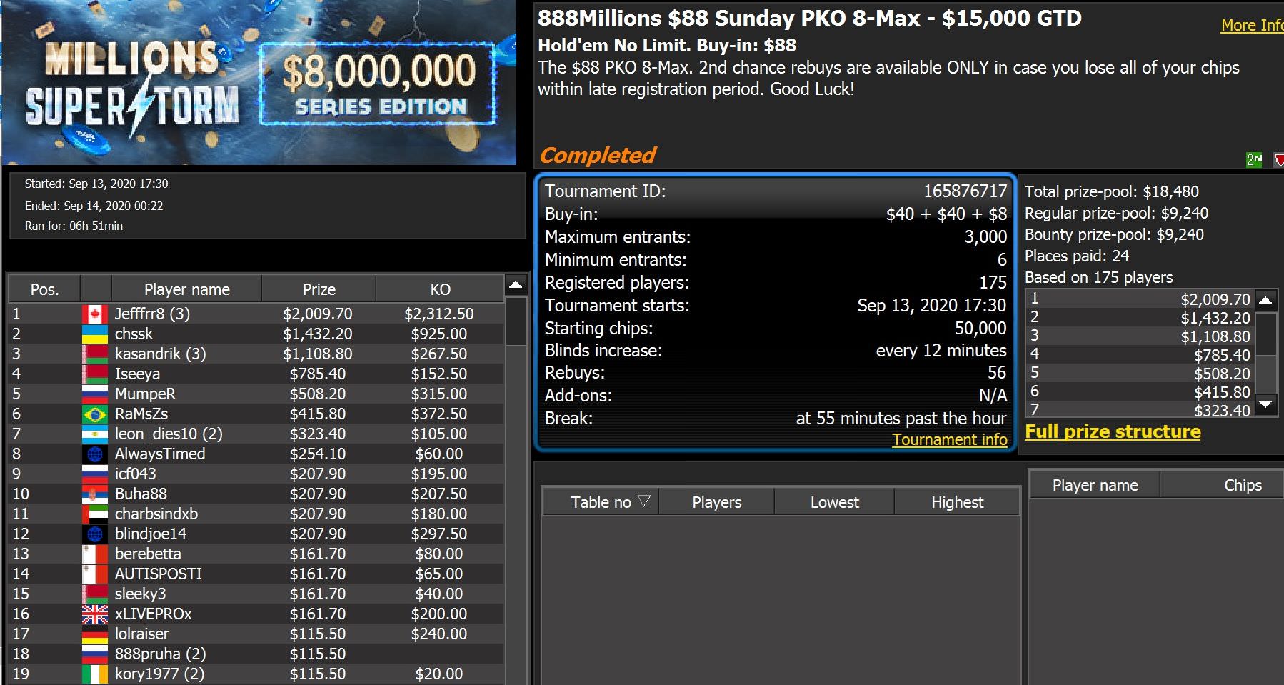 Zentraler Ereignis ist derzeit der 888Millions SuperStorm, wo für $320 Startgeld sensationelle $1 Million Preisgeld garantiert wird.