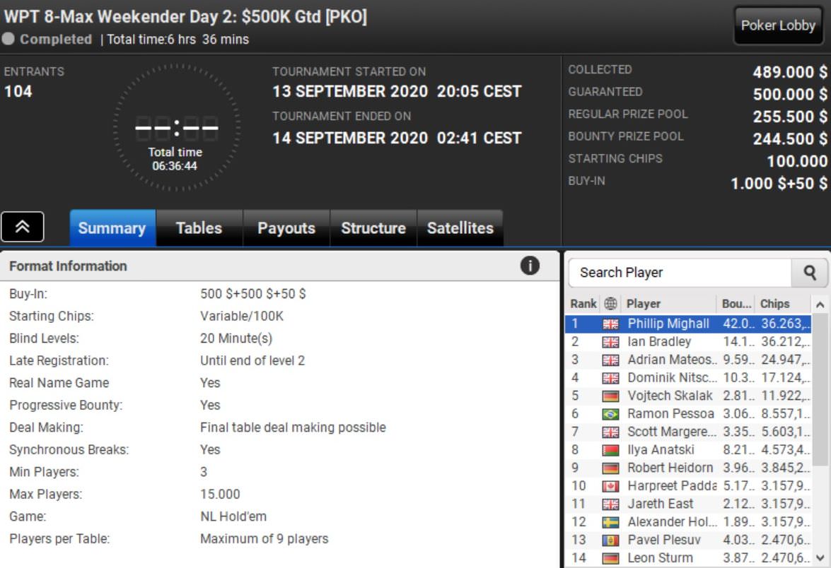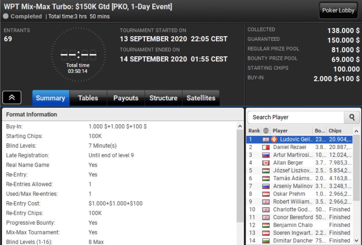 Und auch bei den Side Events hinterließen die DACH-Spieler ihre Duftmarken. Dominik Nitsche wurde beim 8-Max Weekender Vierter und kassierte $28.000, während Daniel Rezaei beim Mix-Max Turbo nur Ludovic Geilich den Vortritt lassen musste und rund $23.000 abräumte.