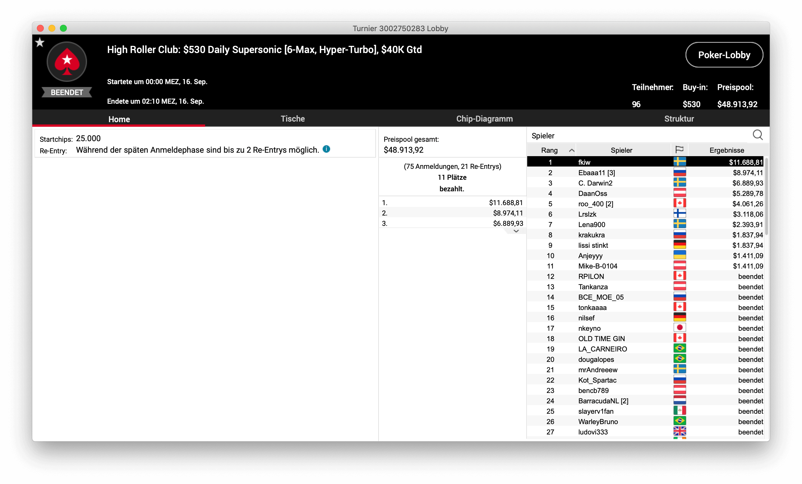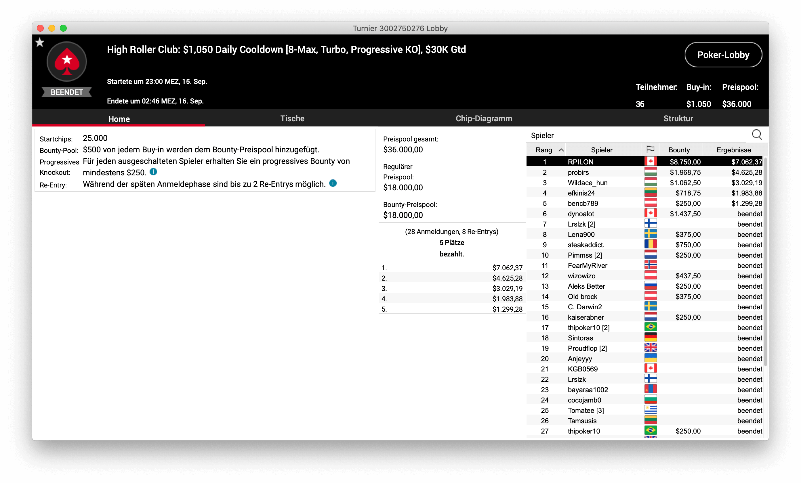 Im PokerStars High Roller Club gab es gestern Vier Turniere, alle Garantien wurden geknackt und es gab einen deutschen Sieger.