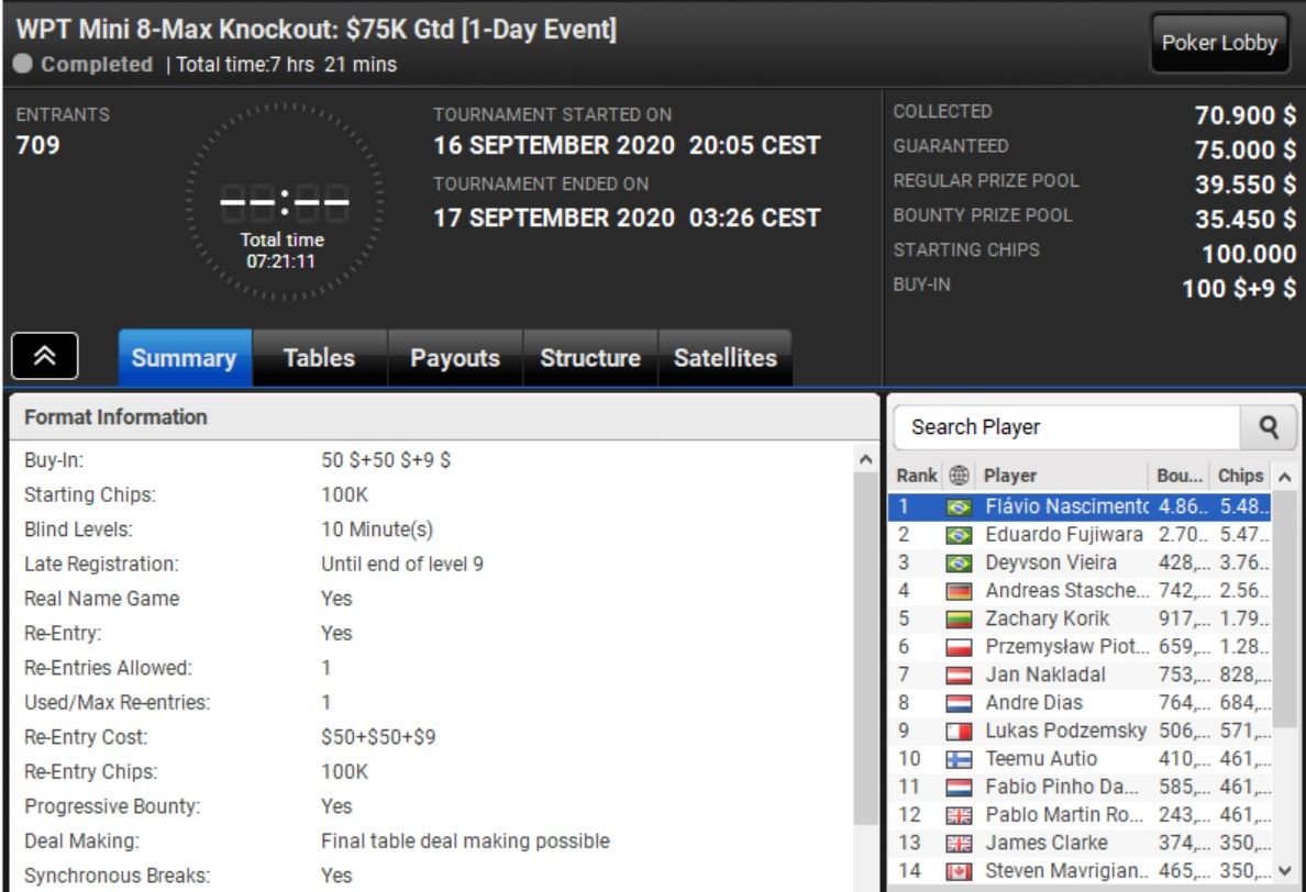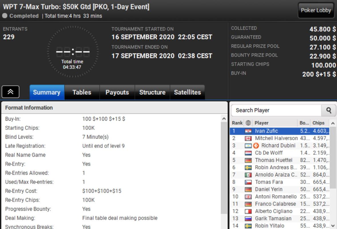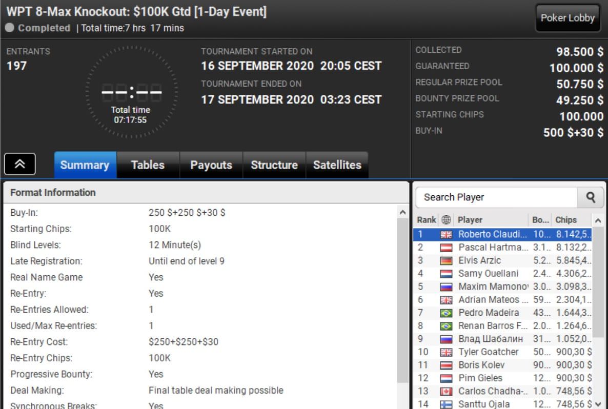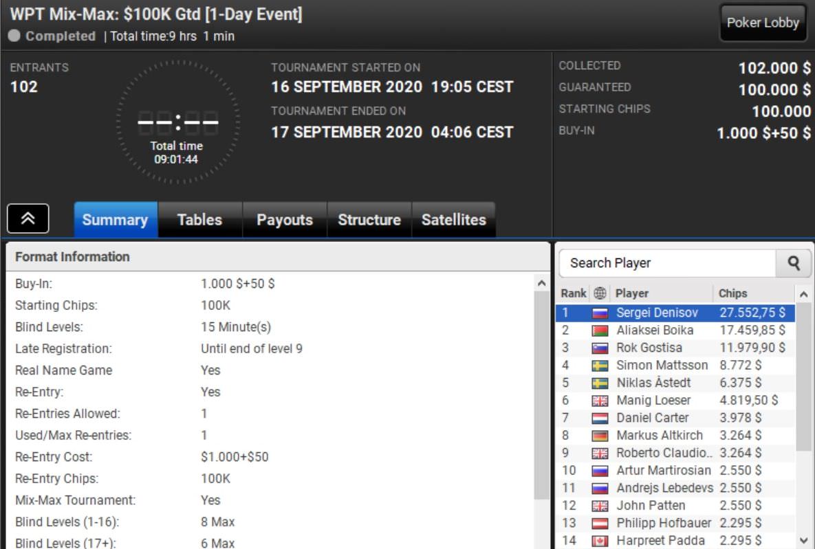 Hartmann erhielt beim $530 WPT 8-max Knockout gut $11.000 Preisgeld, während Wolf sich beim $215 WPT Mix-Max über gut $7.000 freuen konnte.