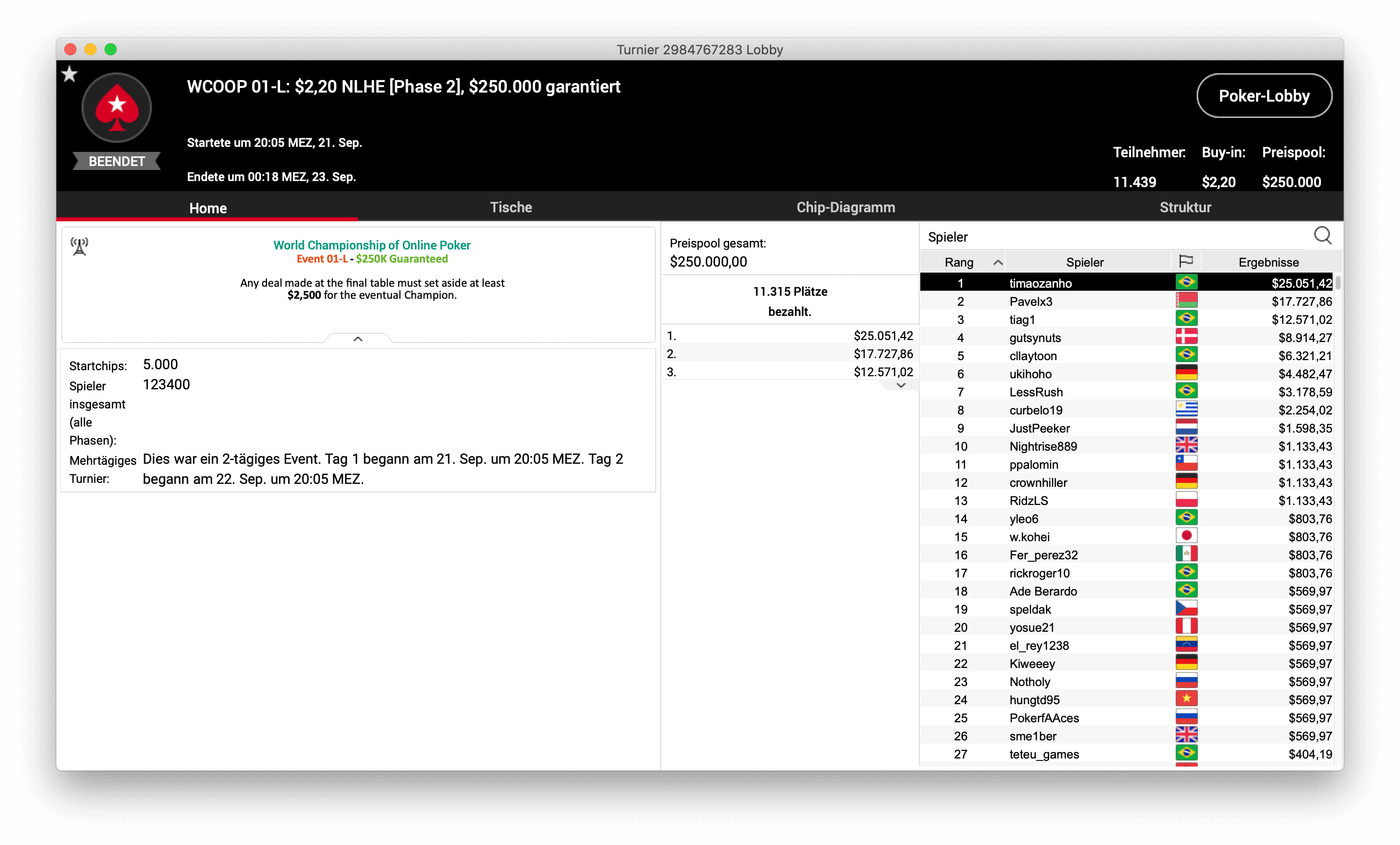 Die WCOOP 2020 ist fast am Ende angekommen, gestern wurden wieder eine Reihe von Turnieren entschieden, das große Main Event Finale steht heute noch aus. Tonio Röder ist noch mit dabei!