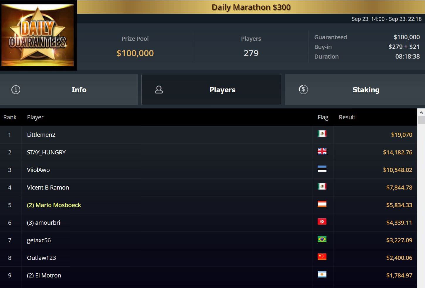Das $400 Forty Stack wurde eine Beute des Österreichers „Tourmination“ und beim $300 Daily Marathon unterstrich Mario Mosböck seine starke Form mit einem fünften Platz.