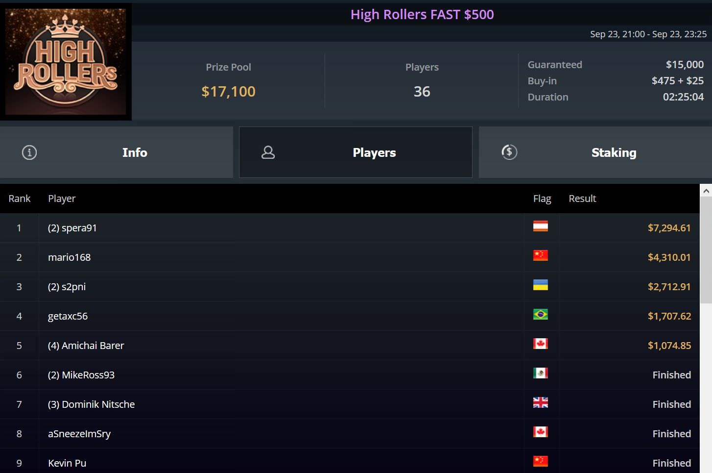 Einen Sieg feierte obendrein der in Österreich wohnhafte Simone „spera91“ Speranza beim High Rollers FAST $500, während Ronny Kaiser in seiner Spezialdisziplin beim 1k PLO Main Event Vierter wurde.