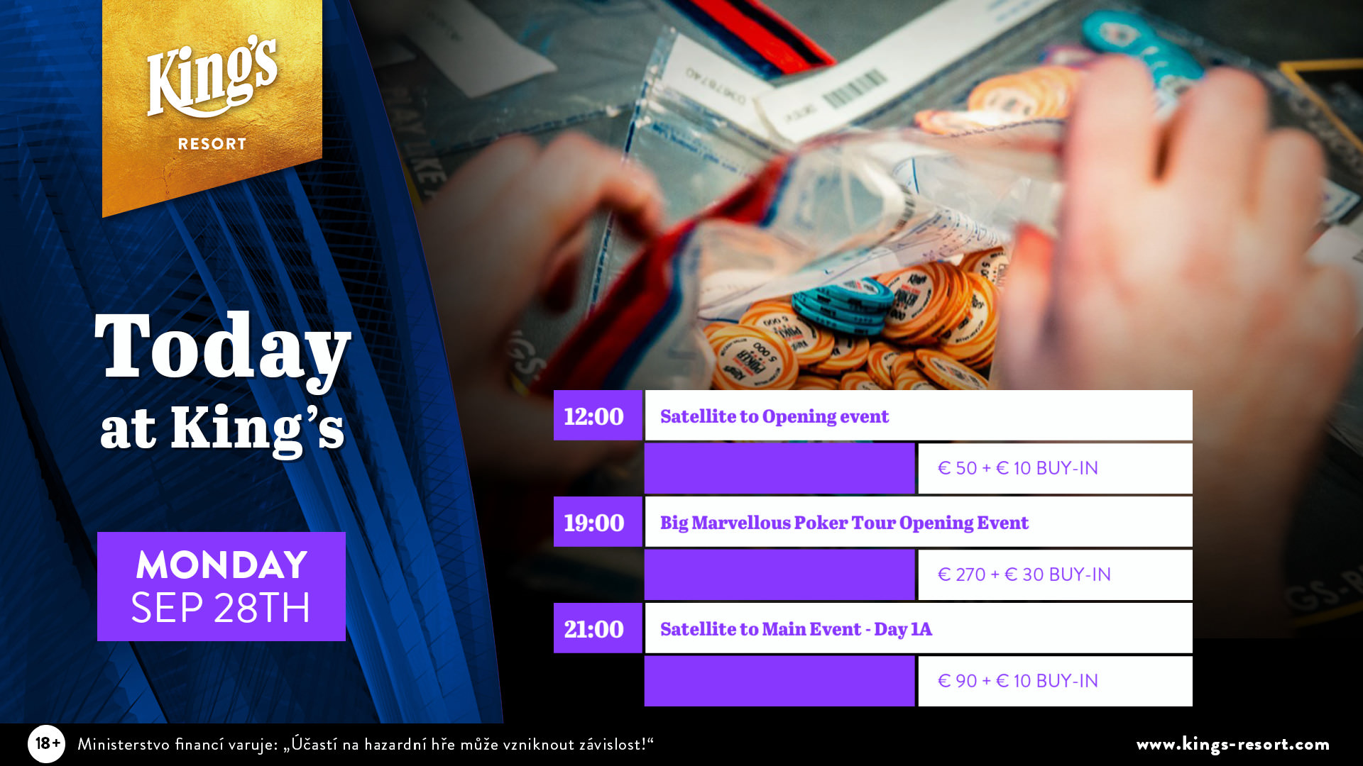 Heute steht im King’s der Auftakt zur Big Marvelous Poker Tour auf dem Turnierkalender, die vom King’s Prag kurzfristig nach Rozvadov verlegt wurde.
