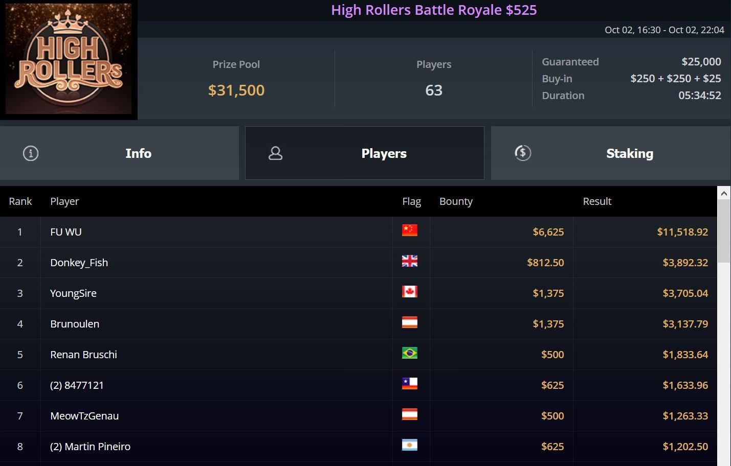 Die gute deutschsprachige Bilanz rundete „Brunoulen“ mit Platz 4 beim $525 High Rollers Battle Royale ab.