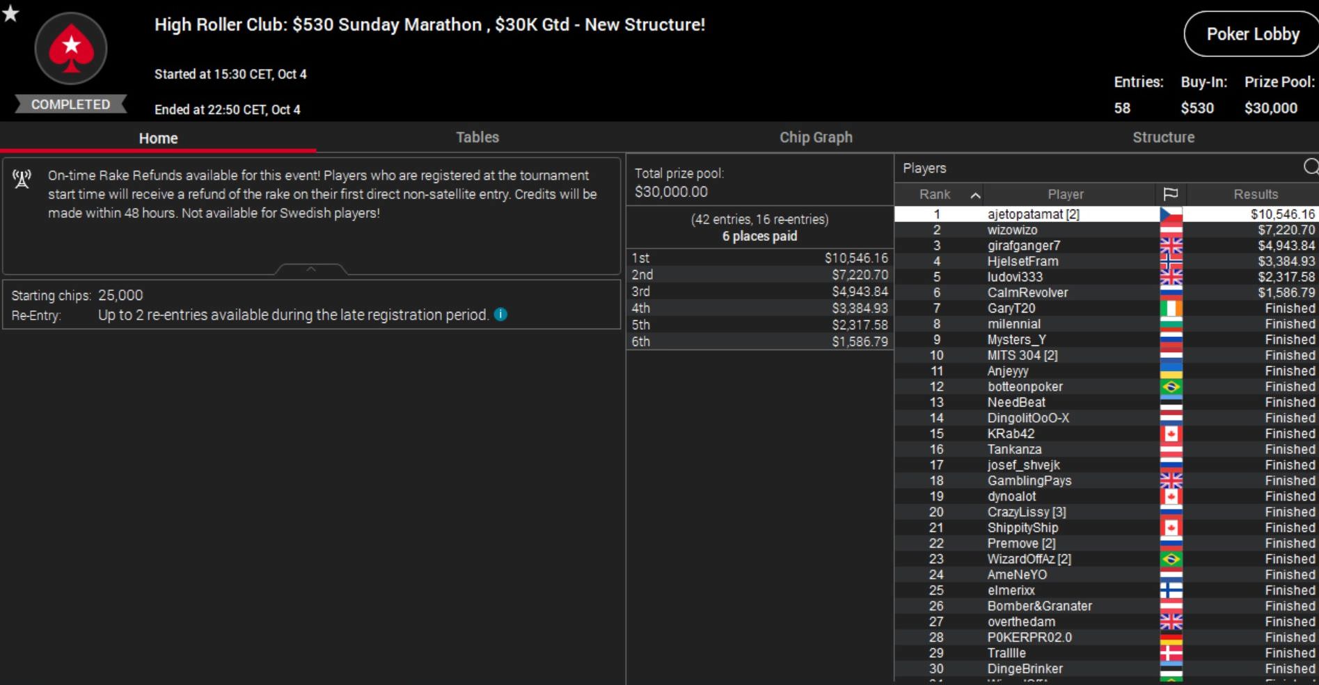 Mit einigen Änderungen gingen gestern die Sonntagsturniere des High Roller Club auf PokerStars über die Bühne.