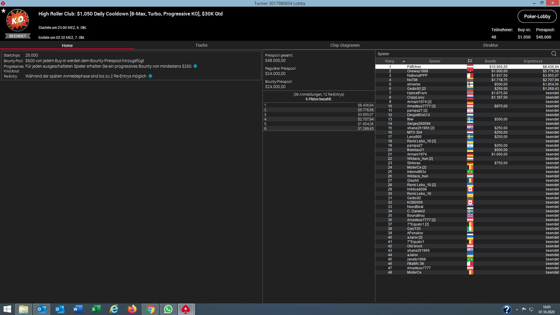 Einen weitern Sieg für die DACH-Spieler gab es beim $1.050 Daily Cooldown Event. Hier triumphierte Pascal „Päffchen“ Hartmann (GER/AUT) und kassierte $8.436 + $10.906 Bounties.