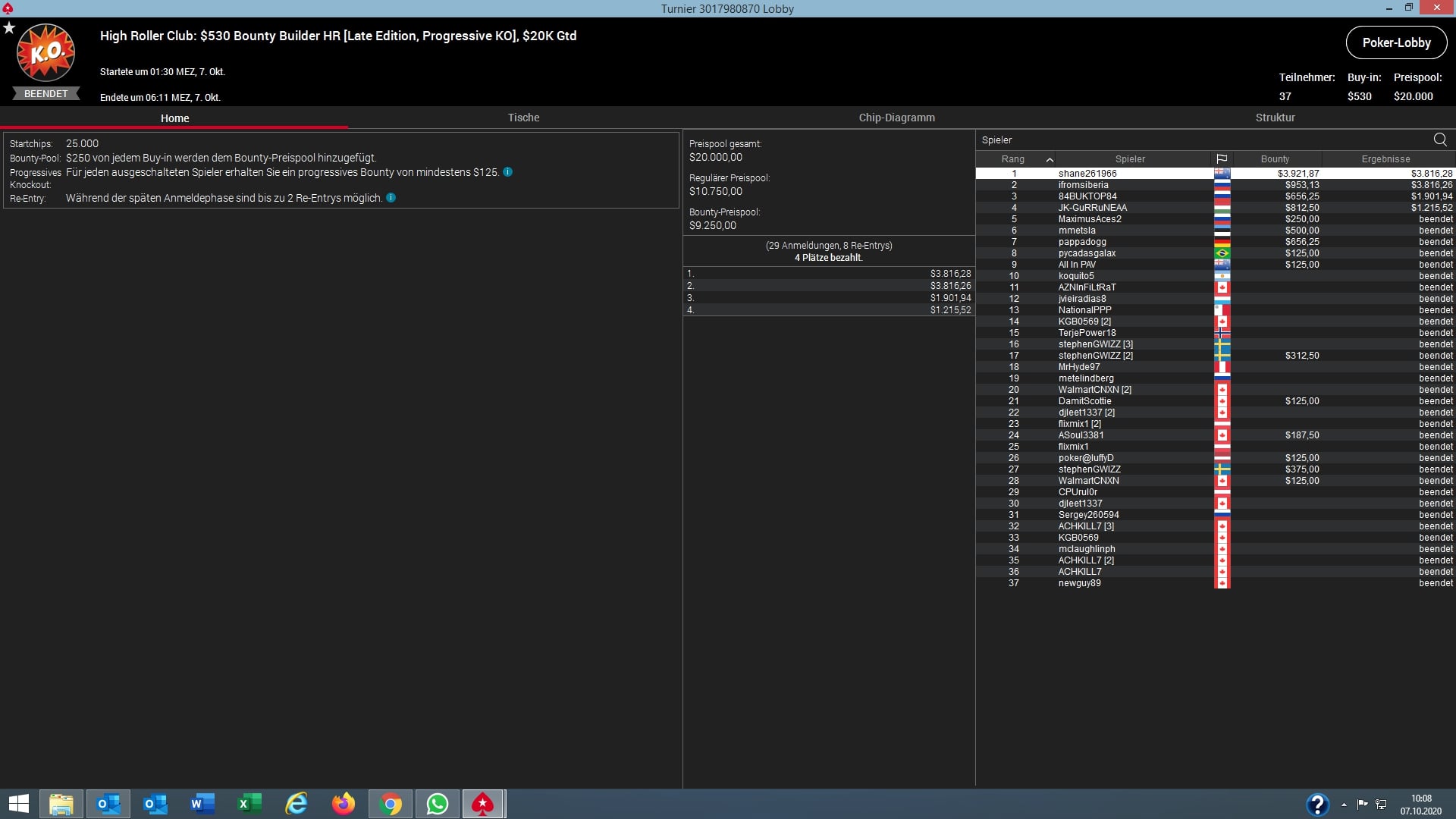 Außerdem konnte „shane261966“ aus Neuseeland noch das $530 Bounty Builder High Roller Late-Edition Event für sich entscheiden und $3.816 + $3.921 Bounties abräumen.