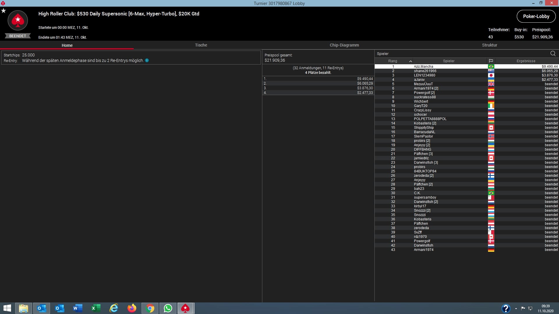 Im PokerStars High Roller Club wurden am Samstag insgesamt nur vier Turniere entschieden, bei denen Preisgelder von $171.909 ausgespielt wurden.