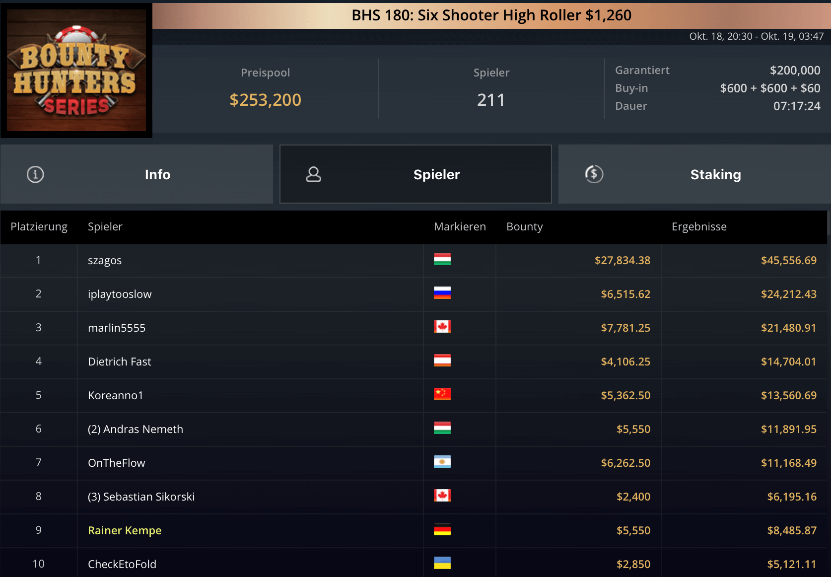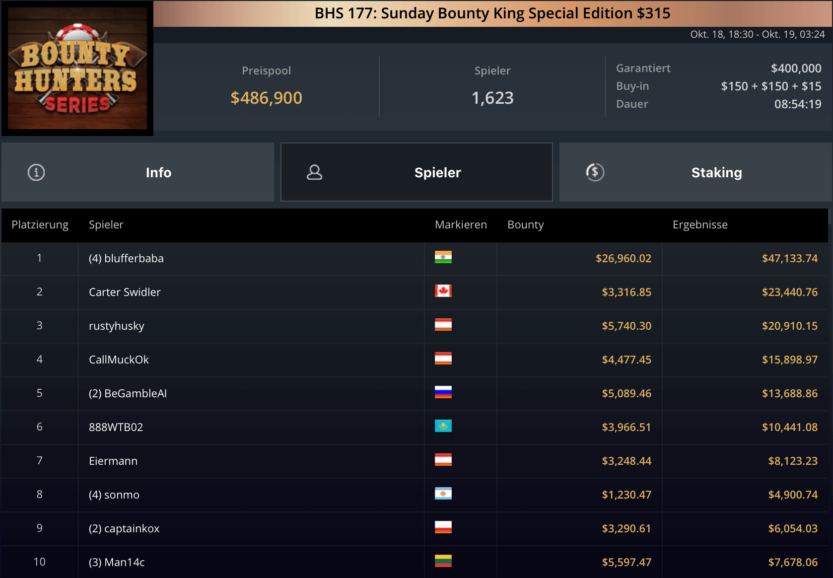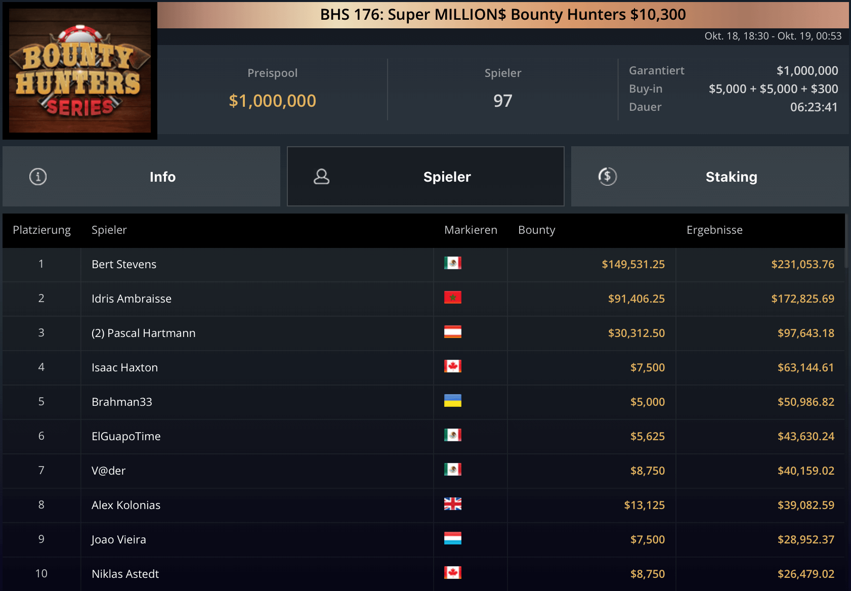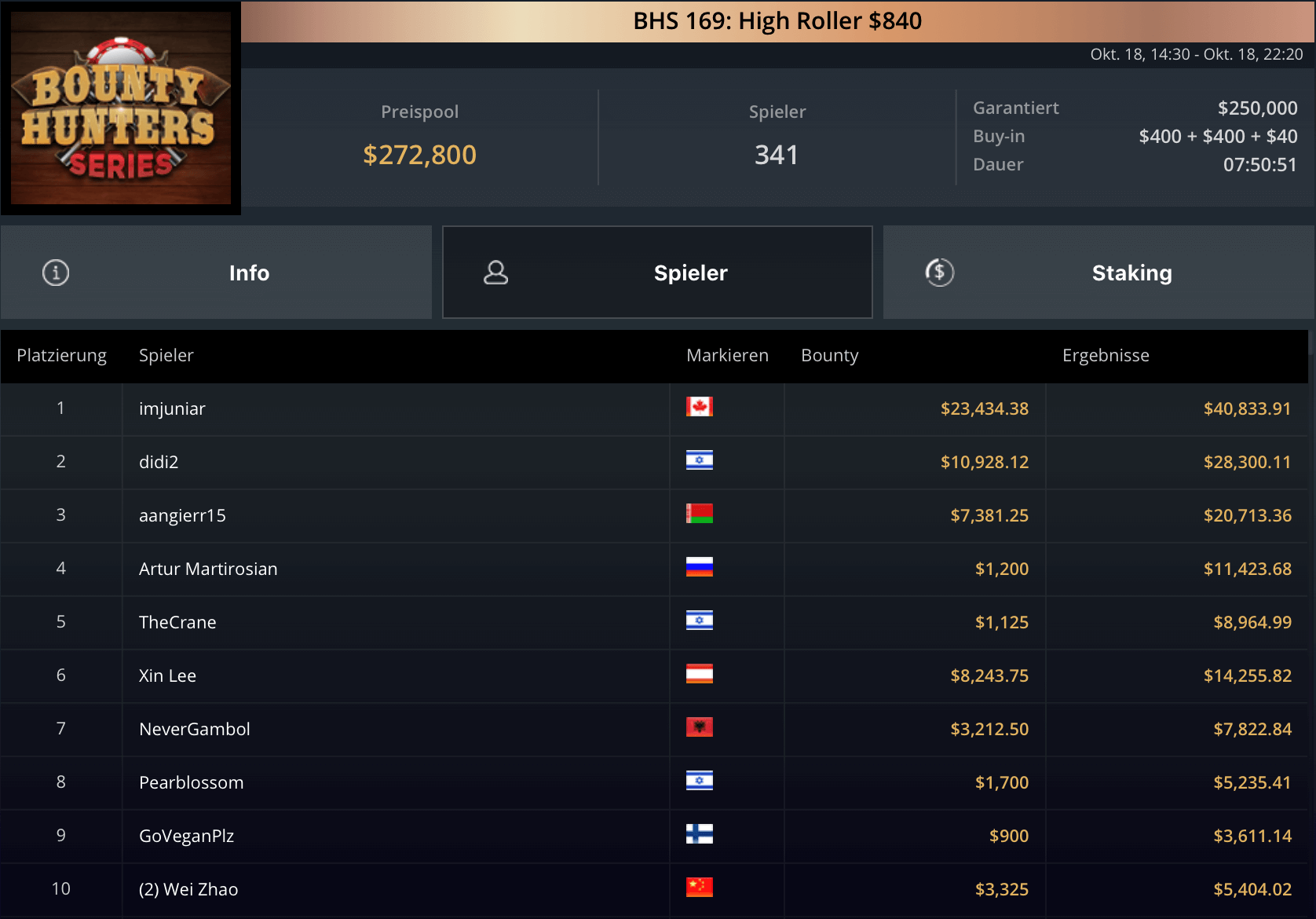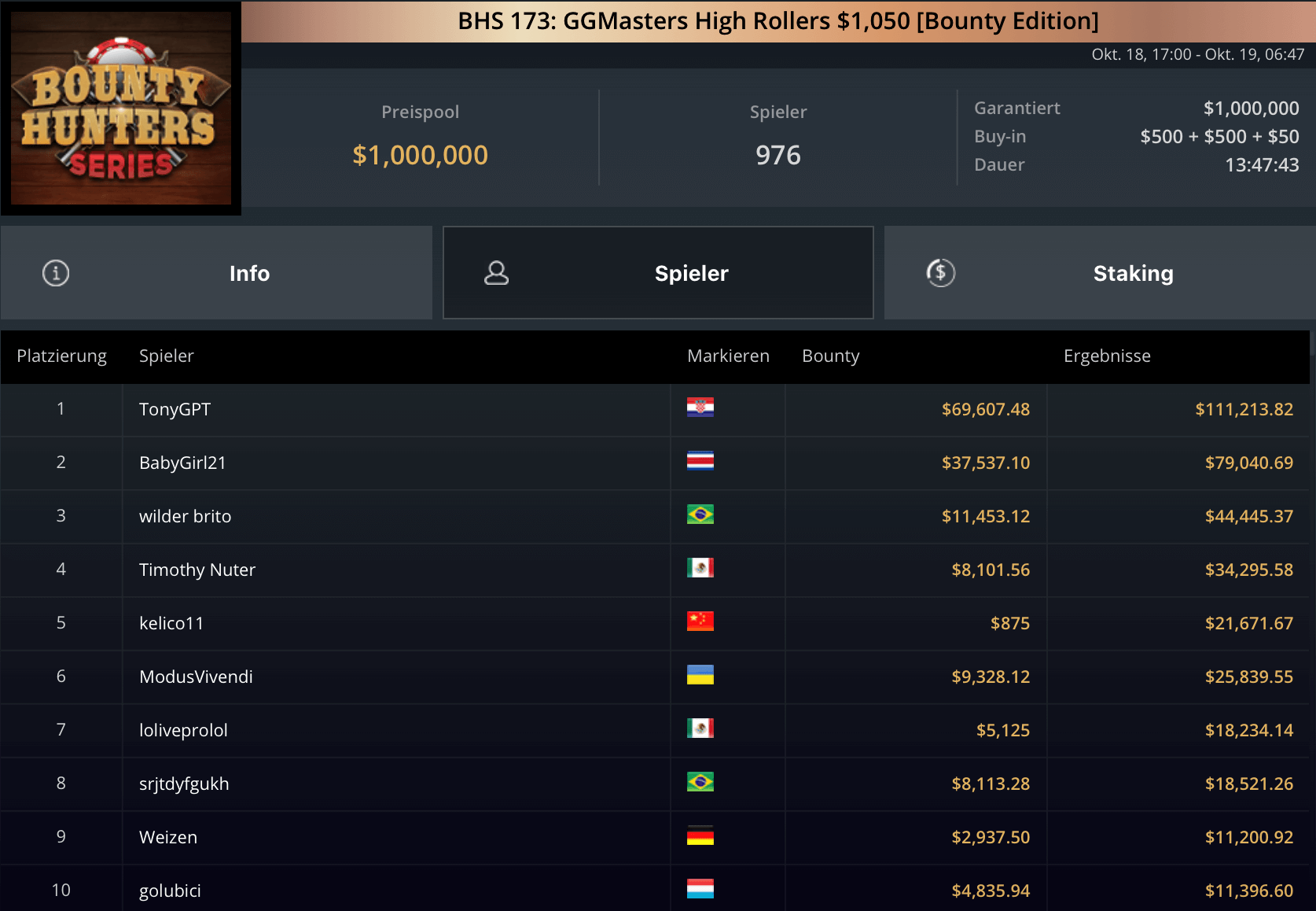 Die Bounty Hunter Series auf GGPoker war gestern wieder im vollen Gange. Eine ganze Reihe an Turnieren ging über den virtuellen Filz, mit Christian Rudolph gab es einen prominenten DACH-Gewinner.