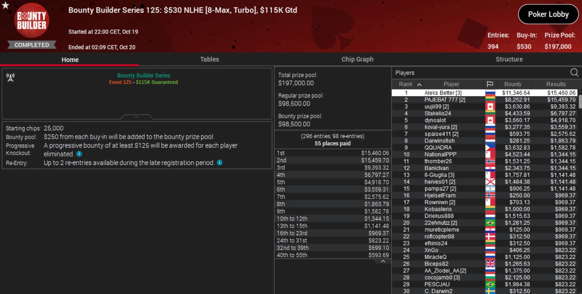 Größte Gewinner nach dem Abbruch waren die beiden russischen Regs „Aleks Better“ und „josef_shvejk“, die die Events 125 und 128 für sich entschieden und $26.000 bzw. $21.000 Preisgeld kassierten.