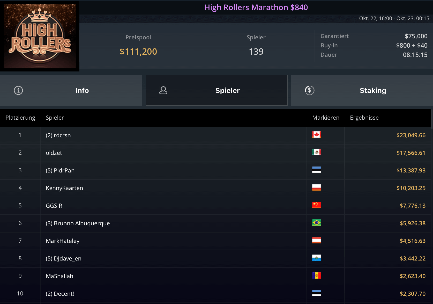 Weitere Ergebnisse der Super High Rollers auf GGPoker am 23.10.2020: