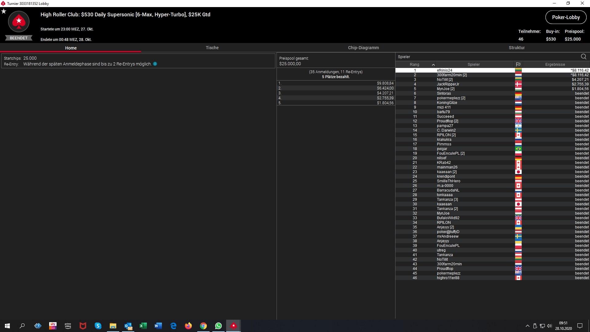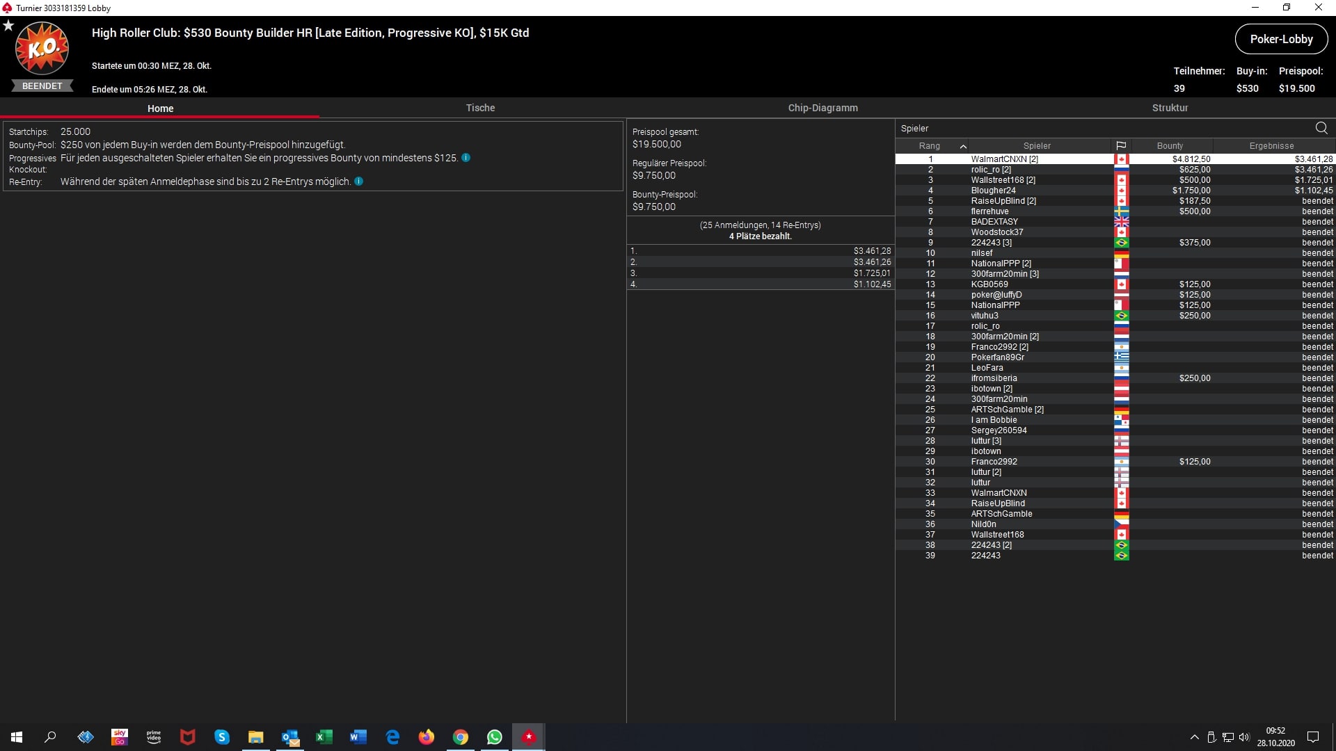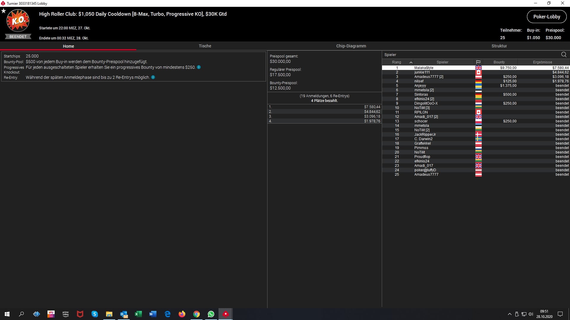High Stakes Grinder Juan „Malaka$tyle“ Pardo Dominguez (GBR) konnte sich den Titel und $7.580 + $9.750 Bounties beim $1.050 Daily Cooldown sichern. Hier ging Platz 3 nach Österreich, an „Amadeus7777“ für $3.096 + $250 Bounties.