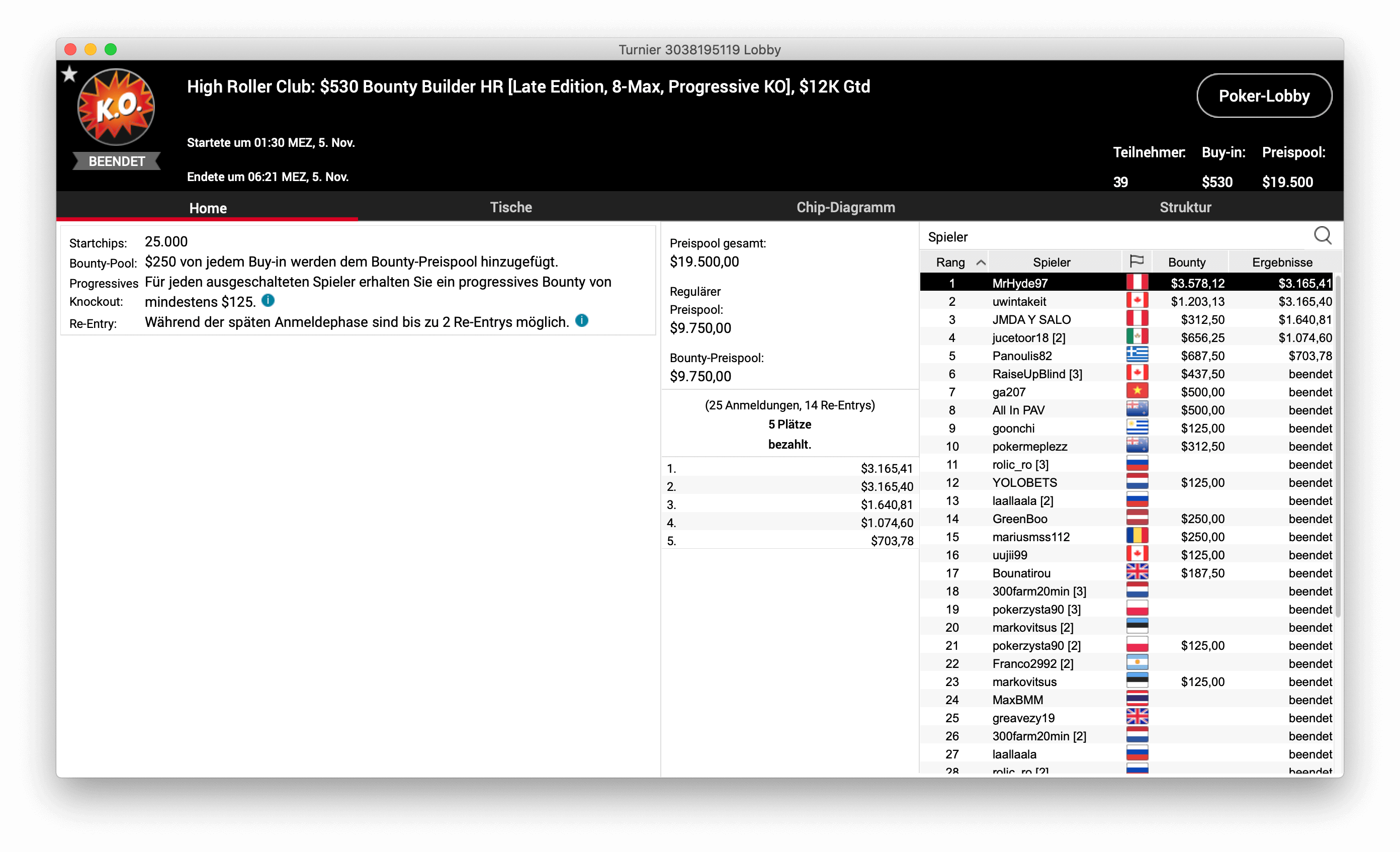 In der gestrigen Nacht gingen im High Roller Club auf PokerStars fünf Turniere über den virtuellen Filz und zwei Österreicher konnten dabei gewinnen. Die Highroller-Prominenz konnte gestern keine Siege verbuchen.