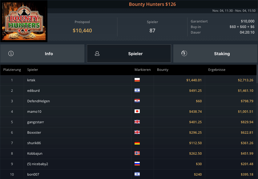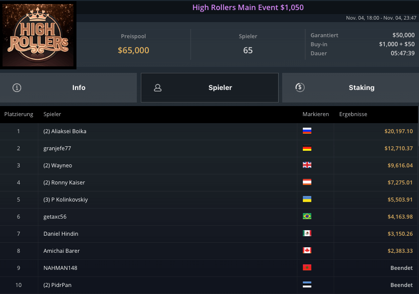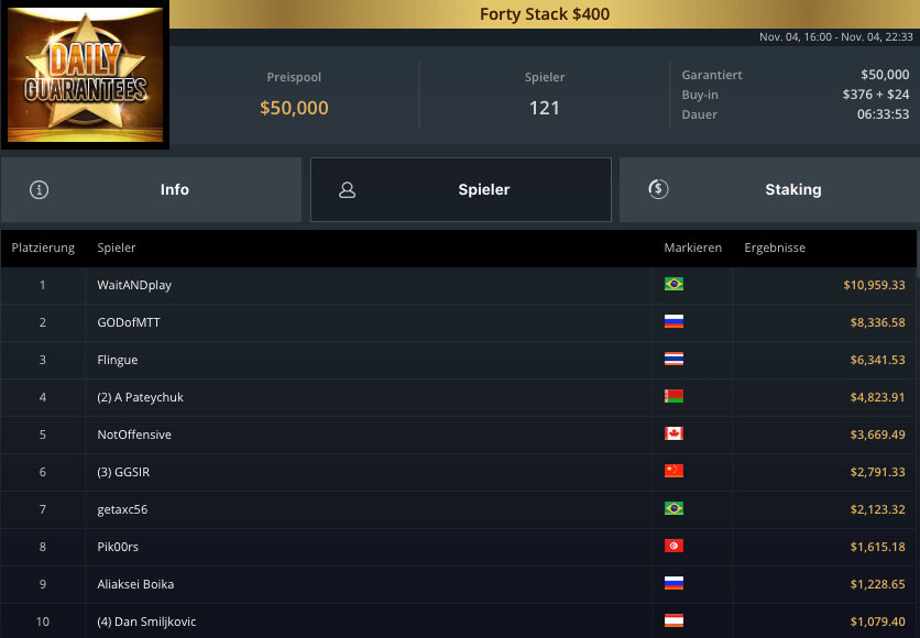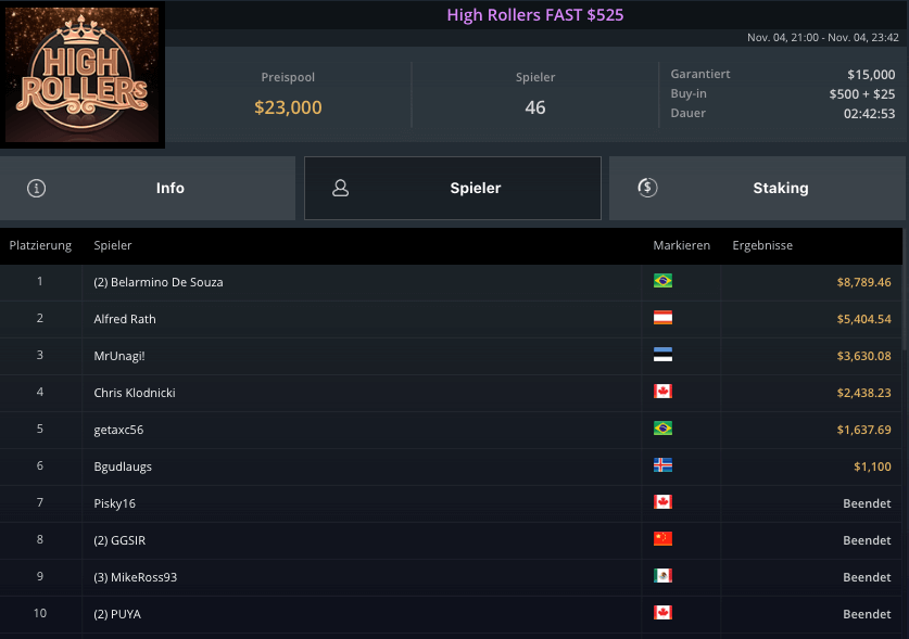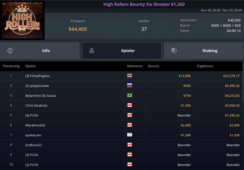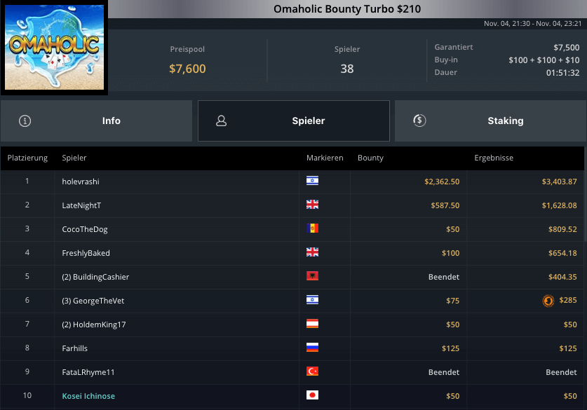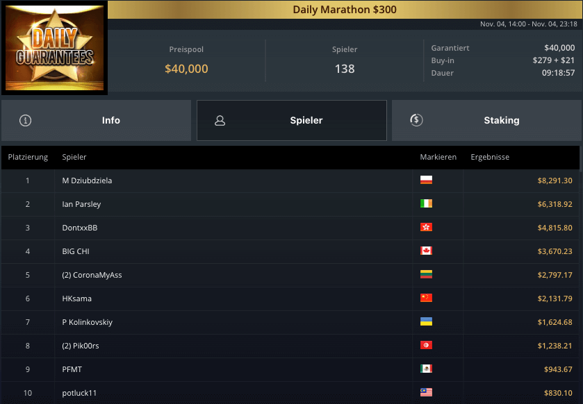 Weitere Ergebnisse auf GGPoker am 04.11.2020: