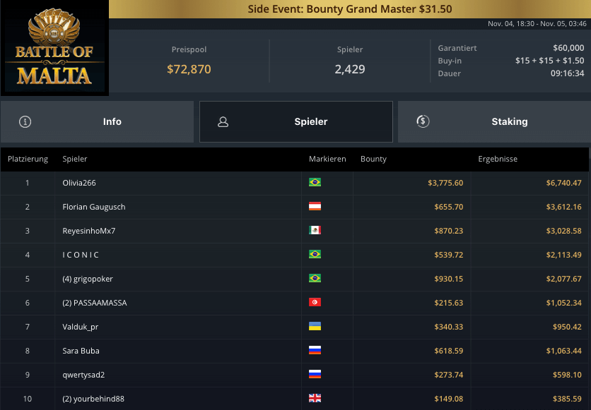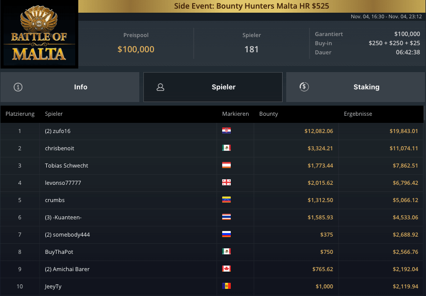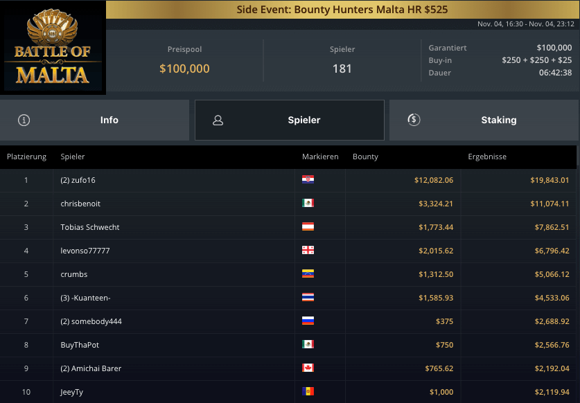 Derzeit läuft auf GGpoker das Battle of Malta, wo neben den Main Events jeden Tag zahlreiche Side Events laufen. Dabei verpasste Florian Gaugusch einen Sieg knapp, zwei weitere Spieler konnten aus Österreich gewinnen.