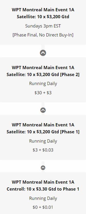 Ab morgen 12:00 Uhr starten Satellites auf partypoker ab $0,01, damit lassen sich Tickets für $3,30 Phase-Satellites gewinnen für höhere Phase-Turniere, die jeden Sonntag um 21:00 in Weekly Finals münden. Dort gibt es dann $3.200 Tickets für die WPT Montreal zu gewinnen.