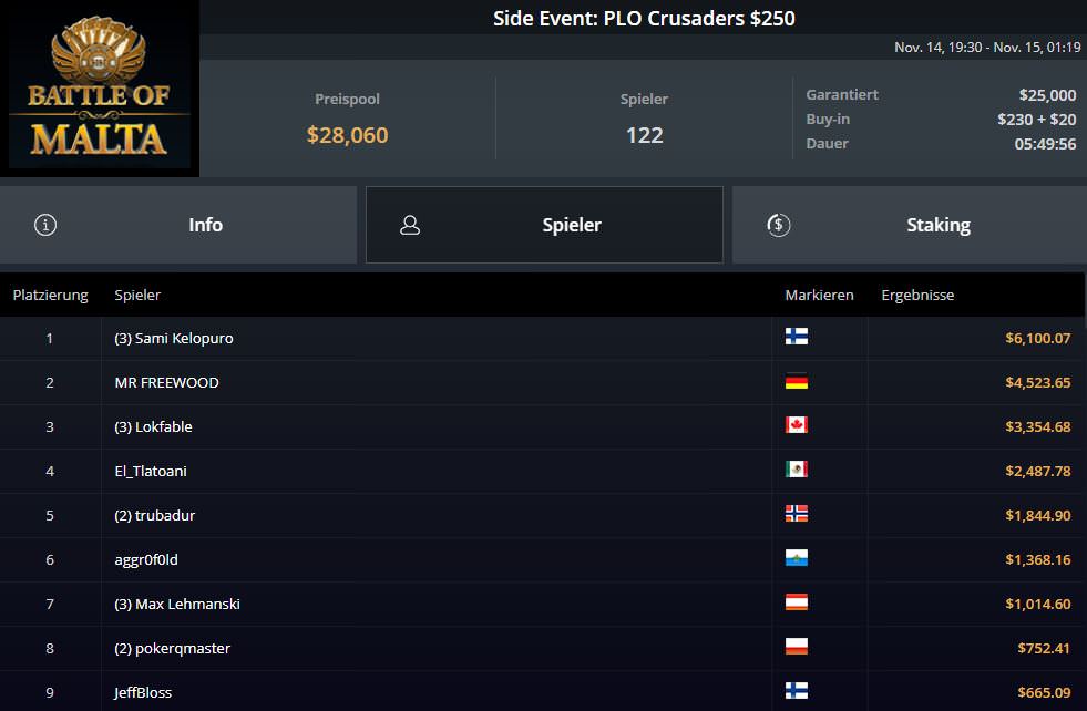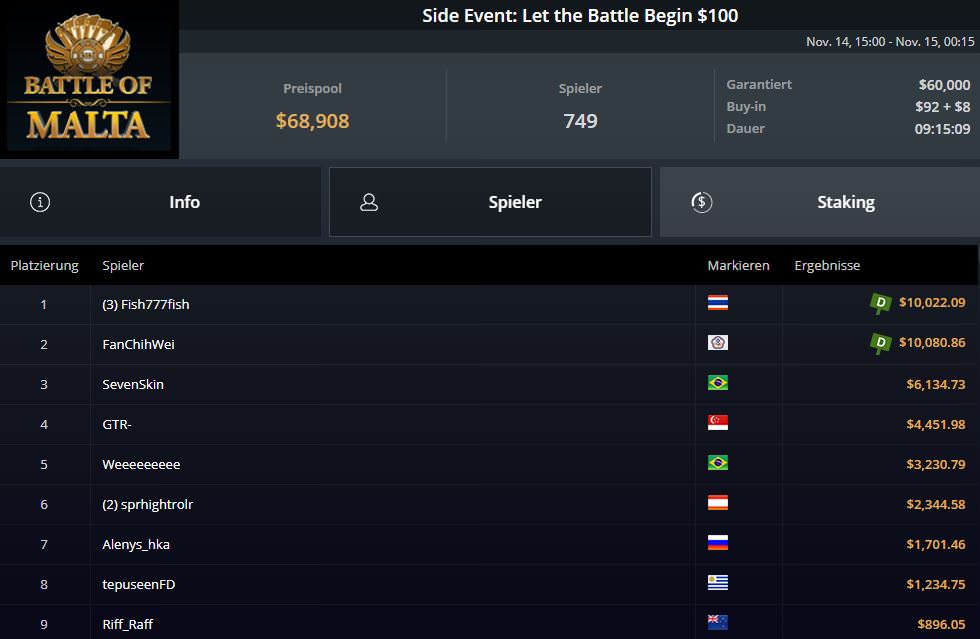 Die deutschsprachigen Pokerspieler blieben gestern beim Battle of Malta auf GGPoker ohne Turniersieg, verbuchten aber zumindest ein paar Treppchen-Platzierungen.