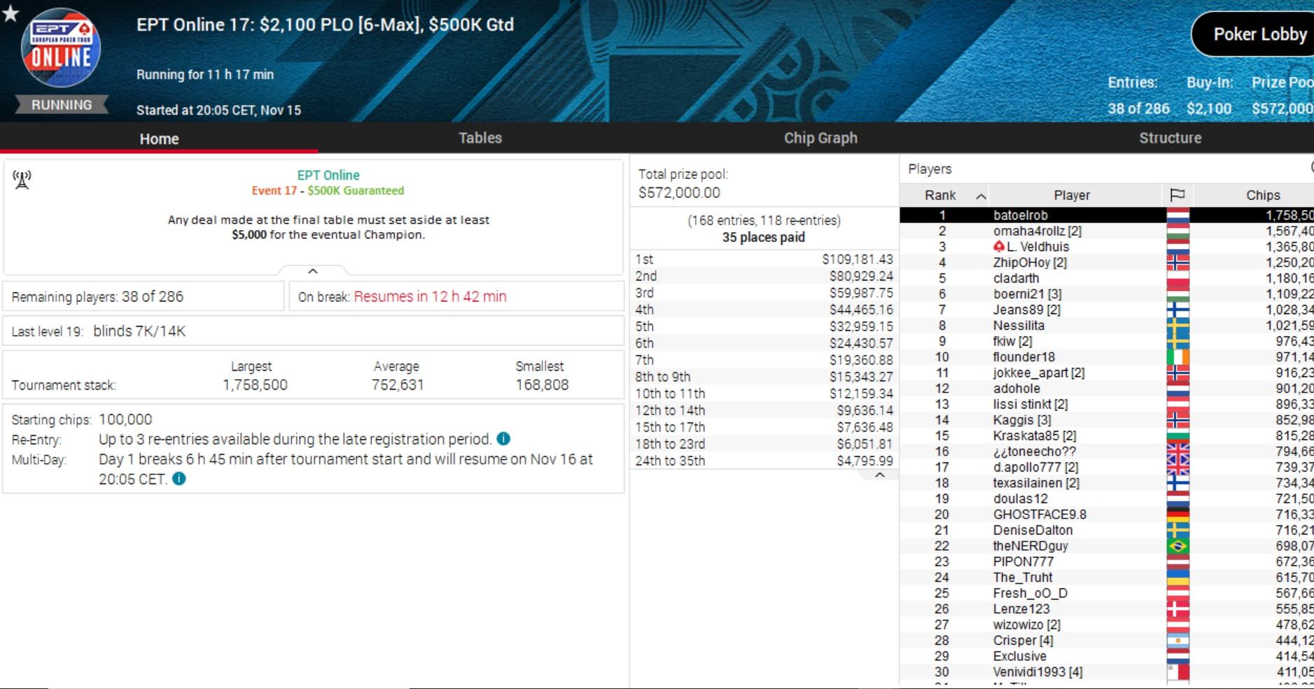 Am Schlusswochenende der ersten EPT Online auf PokerStars wurde Tag 1 des Main Event ausgetragen und die PLO-Freunde kamen ebenfalls zum Zug. Bei den Entscheidungen zeigte ein Deutscher wieder einmal seine Klasse.