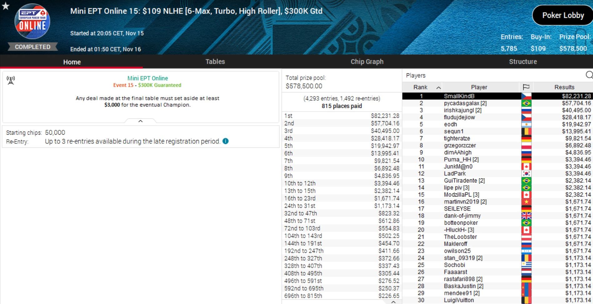 Während die deutschsprachigen Spieler dieses Mal nichts mit dem Ausgang zu tun hatten, konnte sich der Brasilianer „PaDiLhA SP“ als Sieger über mehr als $138.000 Preisgeld freuen.