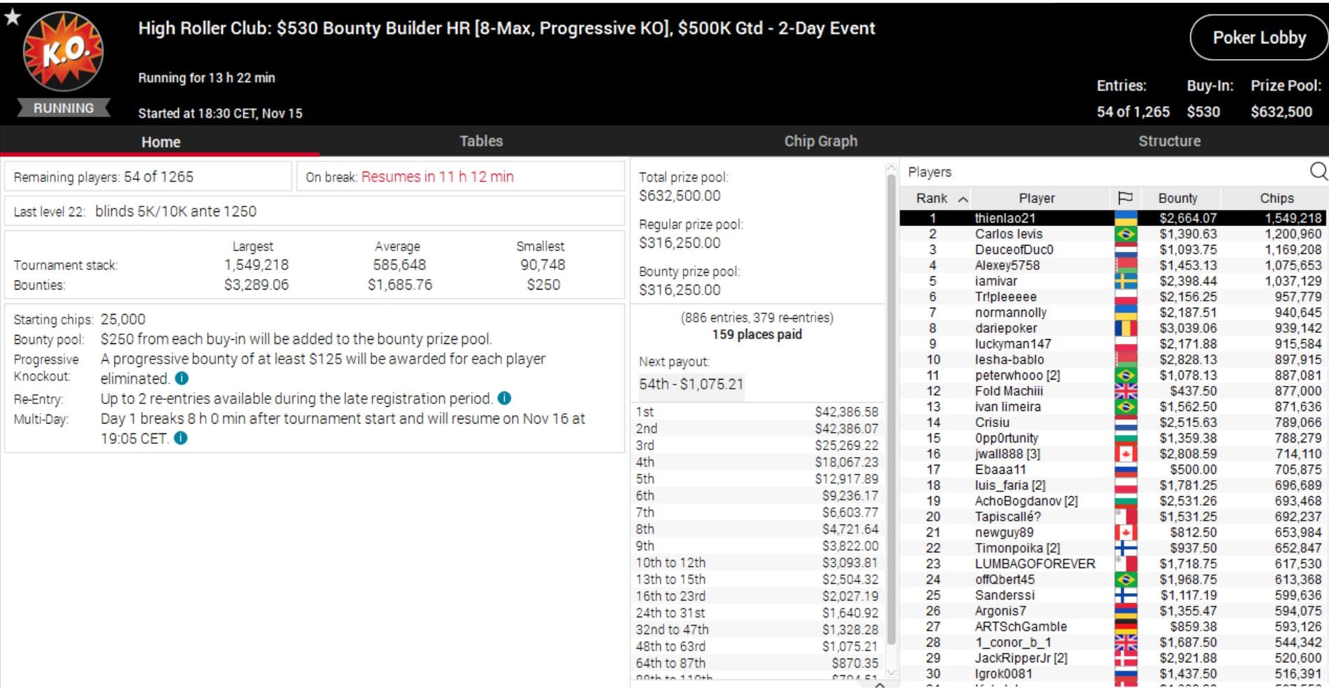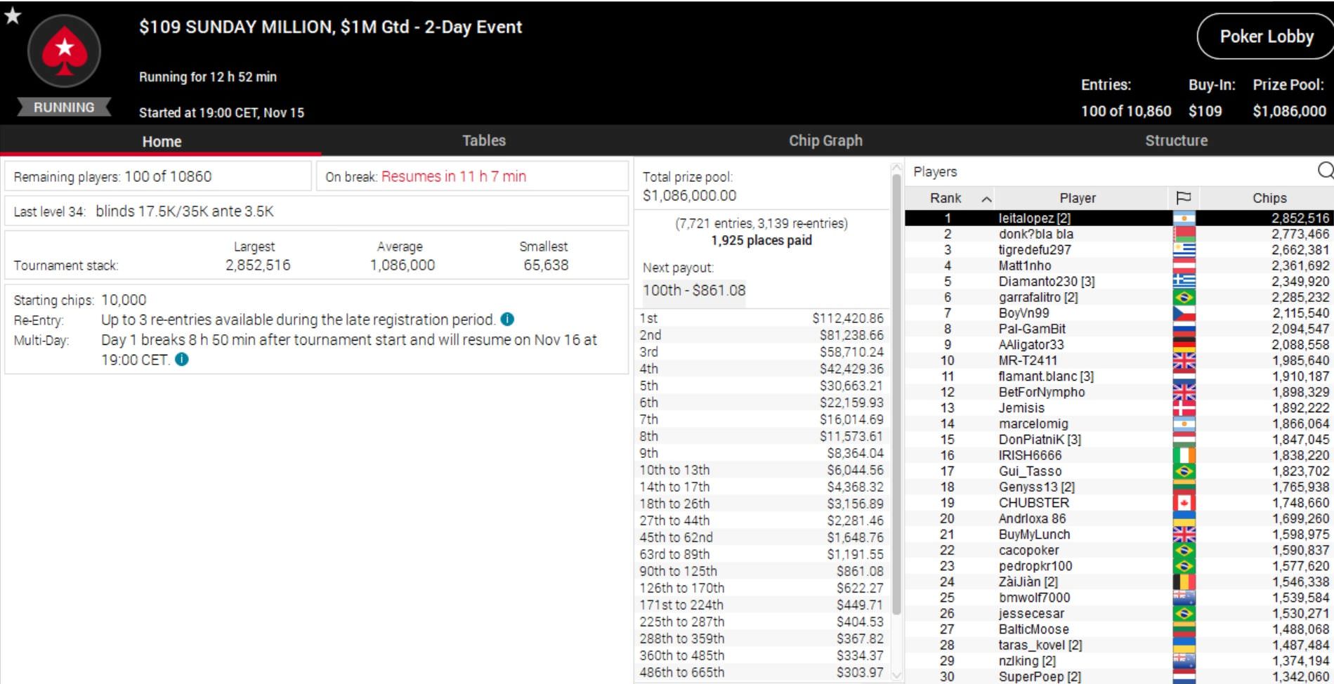 Wie üblich auf zwei Tage angesetzt sind die $109 Sunday Million und das $530 Bounty Builder.