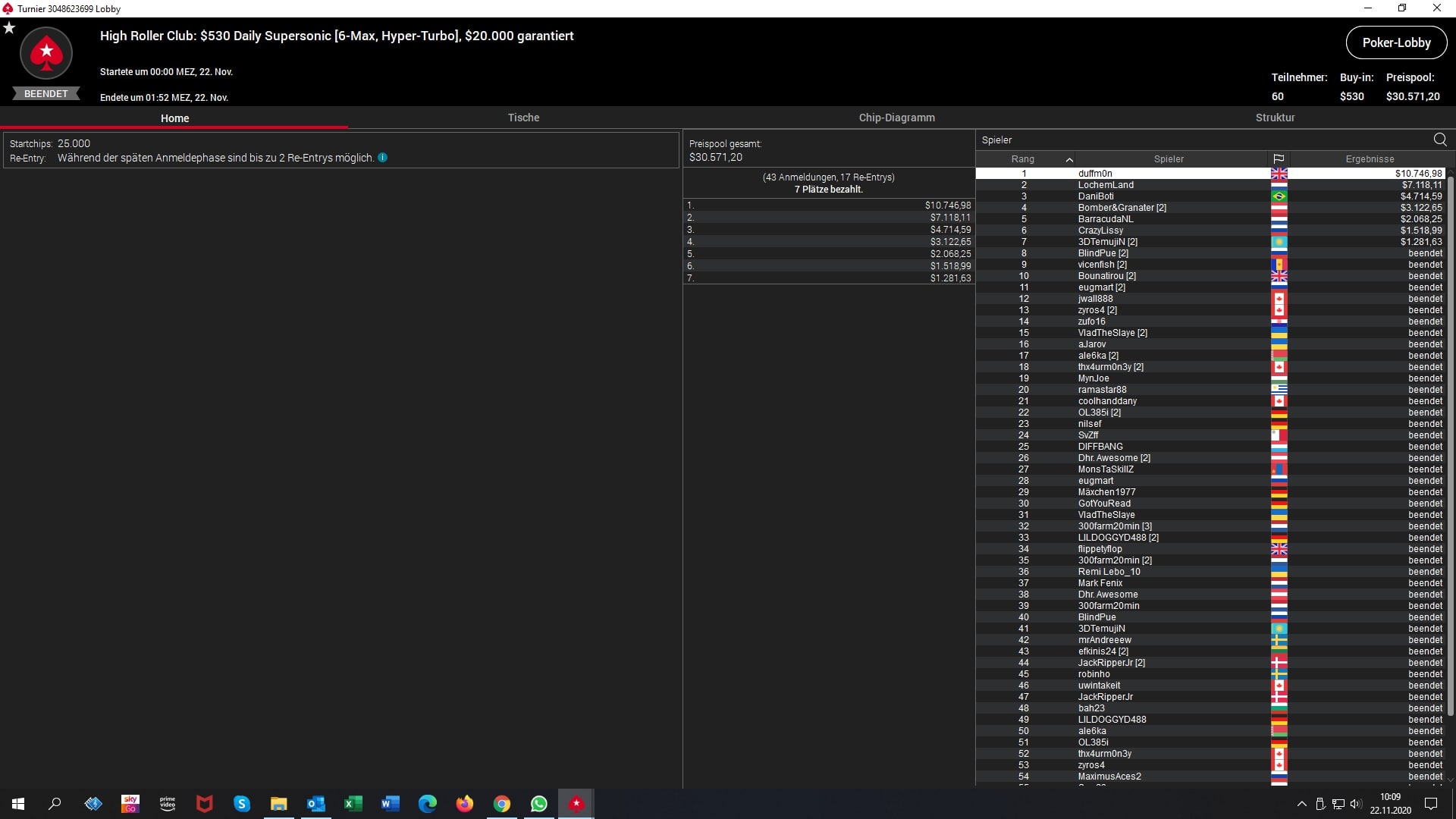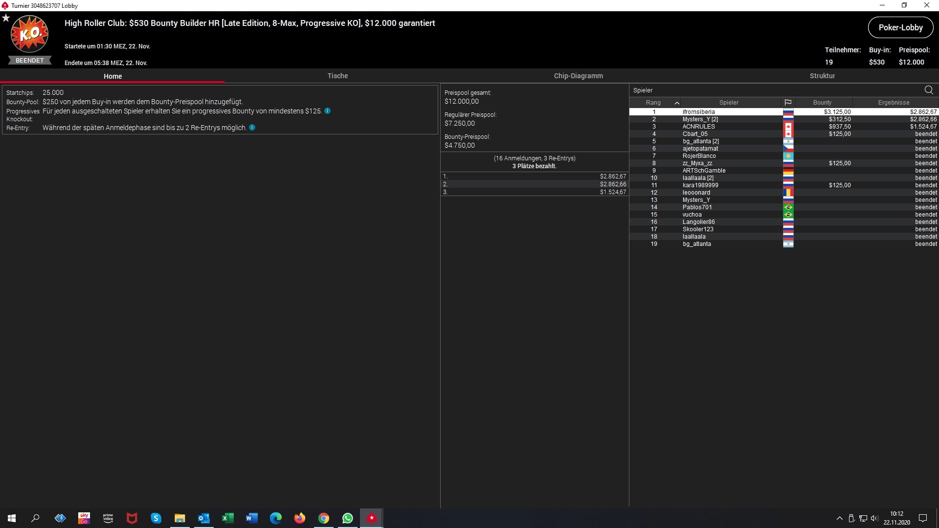Dann gab es noch Siege für „duffm0n“ (GBR – $10.746) beim $530 Daily Supersonic und „iframsiberia“ (RUS – $2.862 + $3.125 Bounties) beim $530 Bounty Builder High Roller Late-Edition Event.