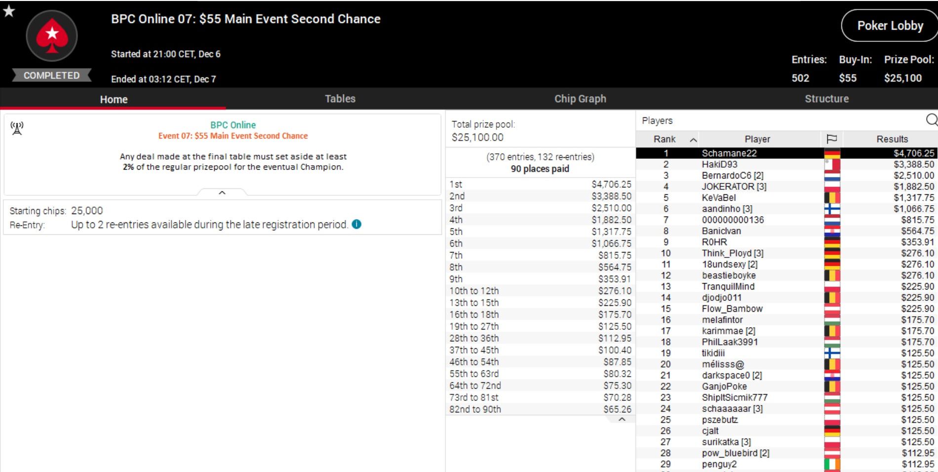 502 Entrys wurden beim Main Event verbucht, womit genau $25.100 im Preisgeldtopf landeten.