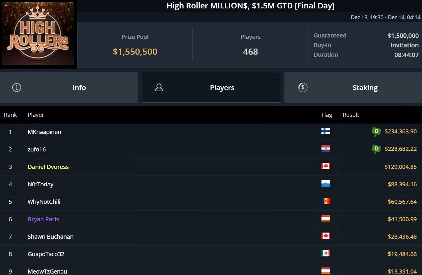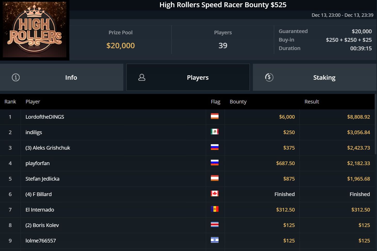 Bei den High Roller MILLION$, bei denen es dieses Mal um $1,55 Millionen ging, durfte Fabian „meowTzGenau“ lange auf den großen Wurf hoffen, musste dann aber mit Platz 9 und gut $13k zufrieden sein.
