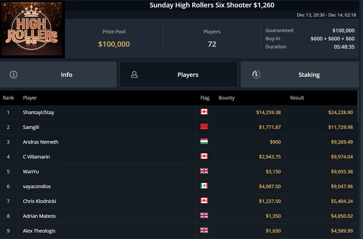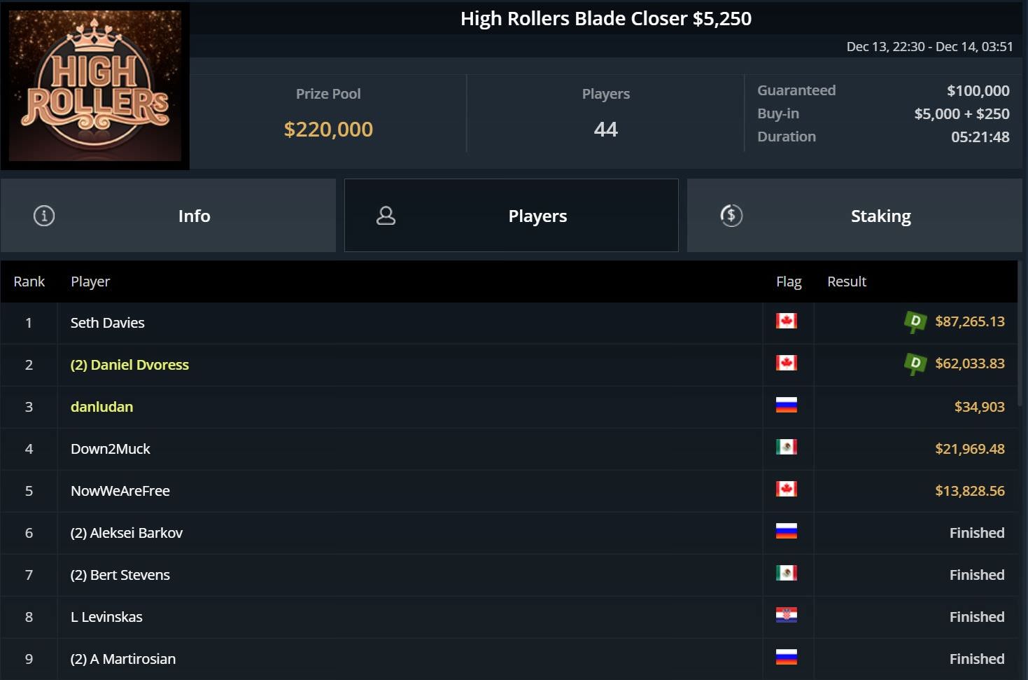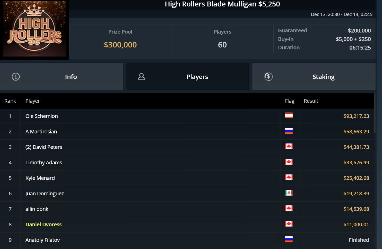 Ganz vorn landete dagegen Ole Schemion beim $5.250 Blade Mulligan. Er ließ alle 59 Konkurrenten hinter sich und durfte sich über einen Cash von gut $93.000 freuen.