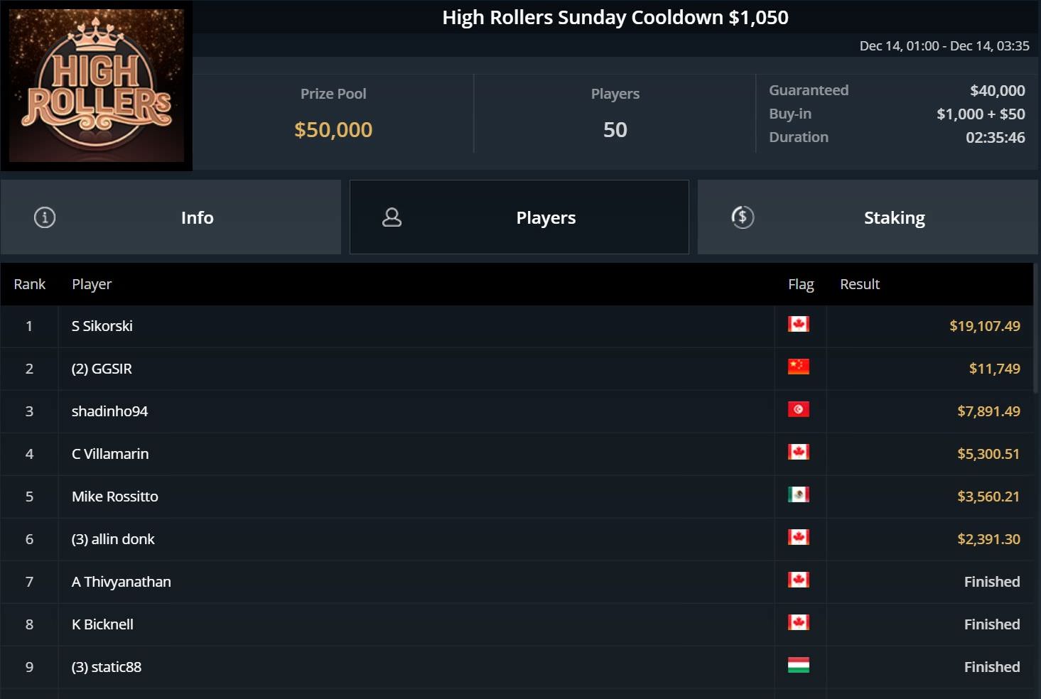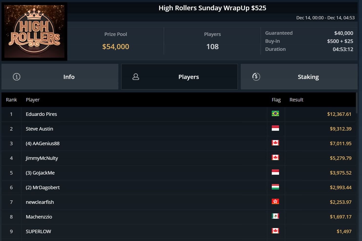 Auf GGPoker herrschte gestern wieder Hochbetrieb, da neben den Turnieren der WSOPC auch noch die „normalen“ Sonntagsturniere auf dem Programm standen.