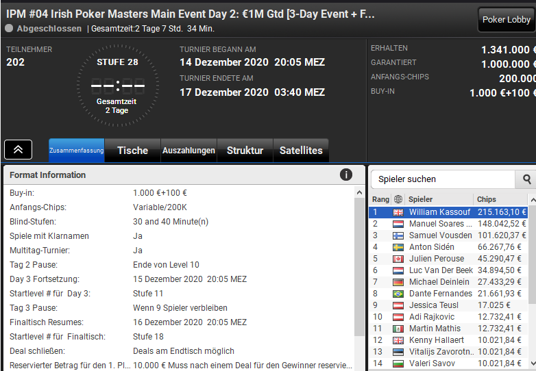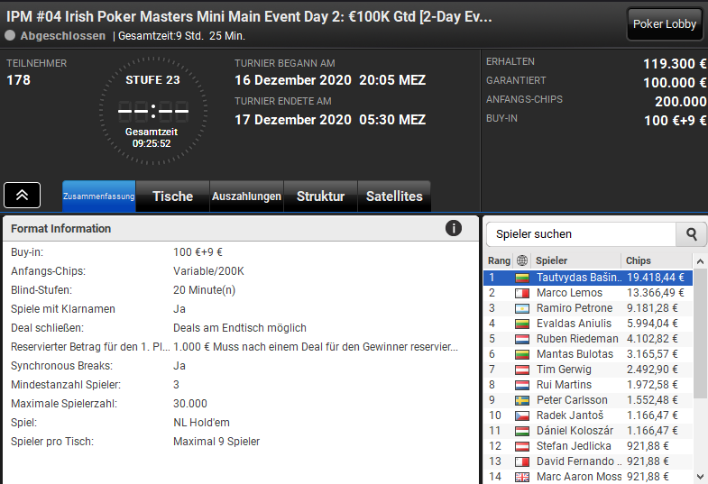 Tim Gerwig aus Deutschland sorgte mit Platz 7 beim €109 Mini Main Event, der ihm knapp €2.500 bescherte, für die beste Platzierung aus DACH-Sicht.