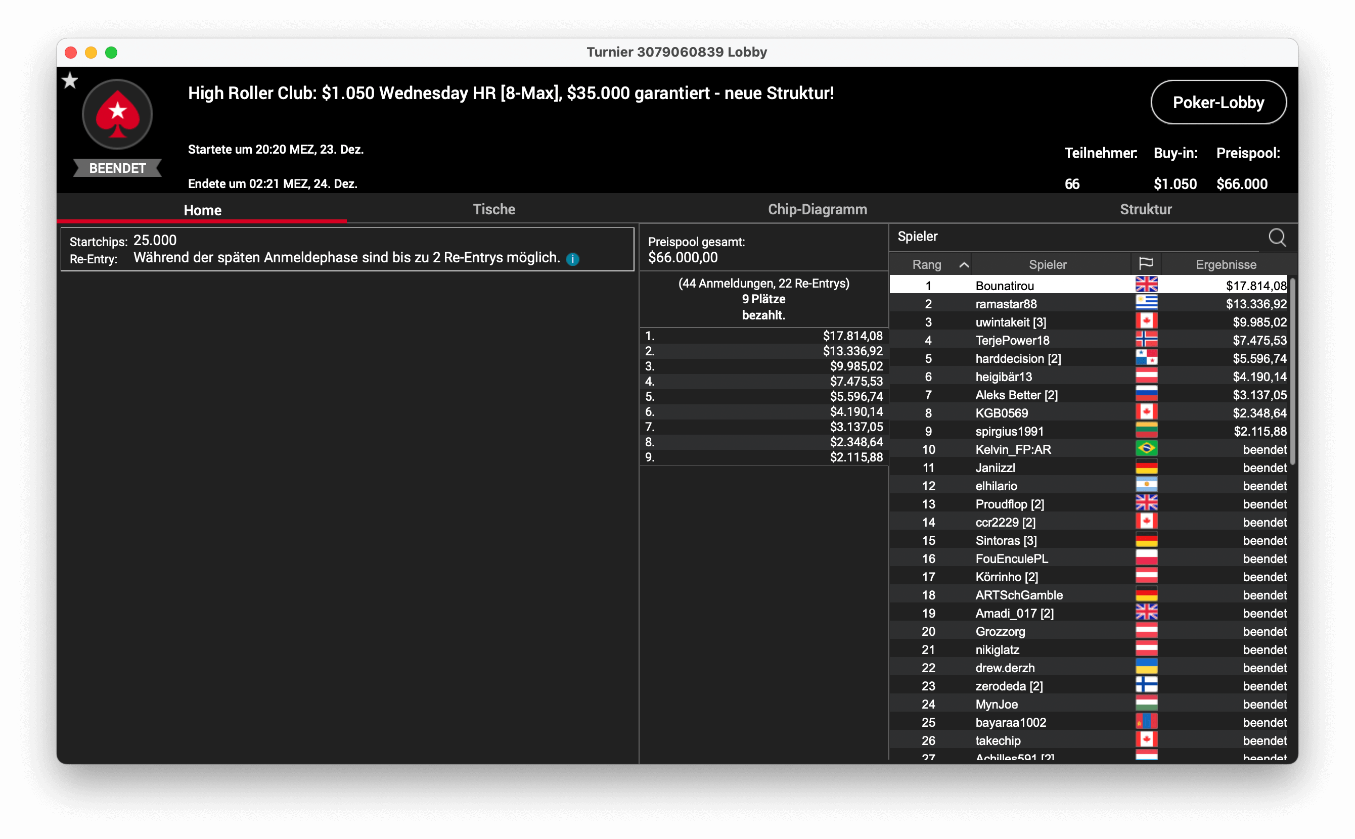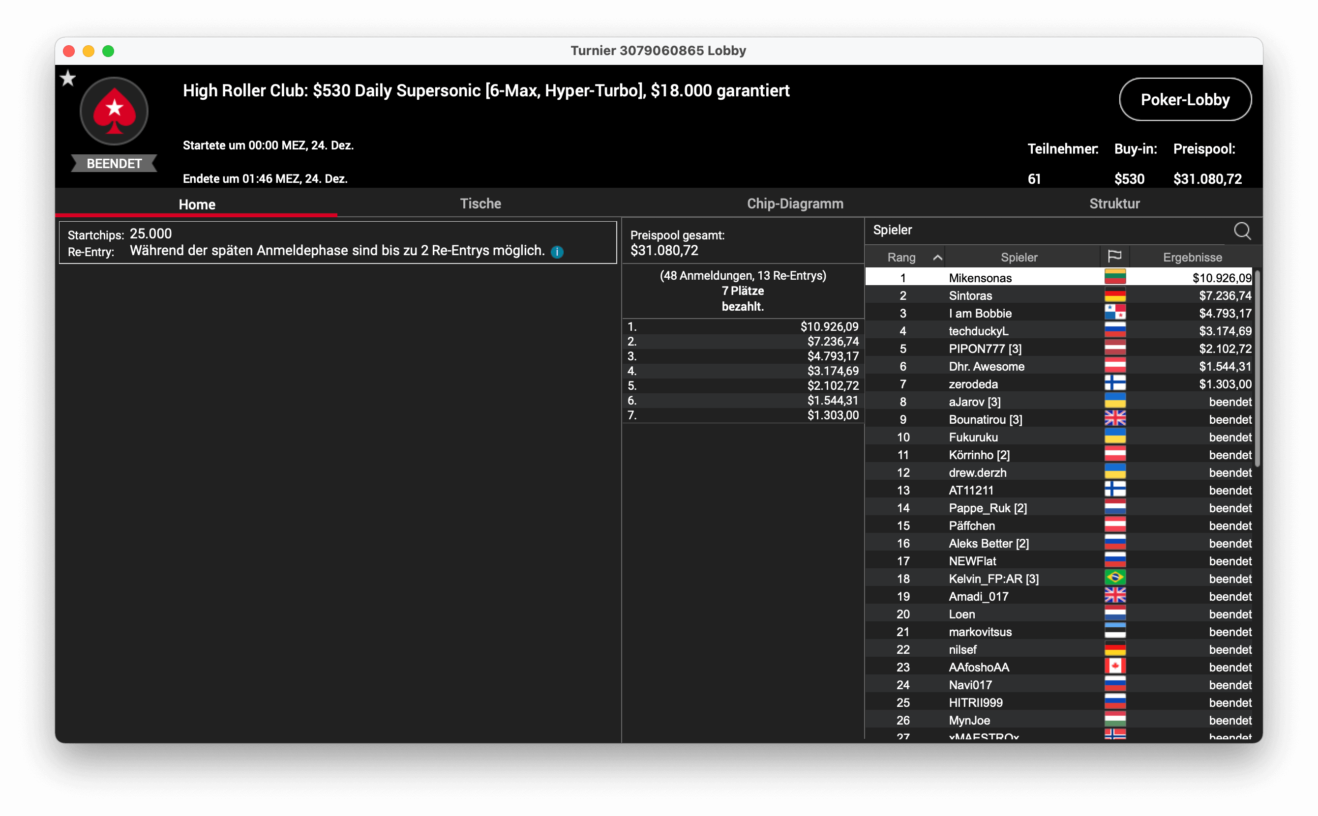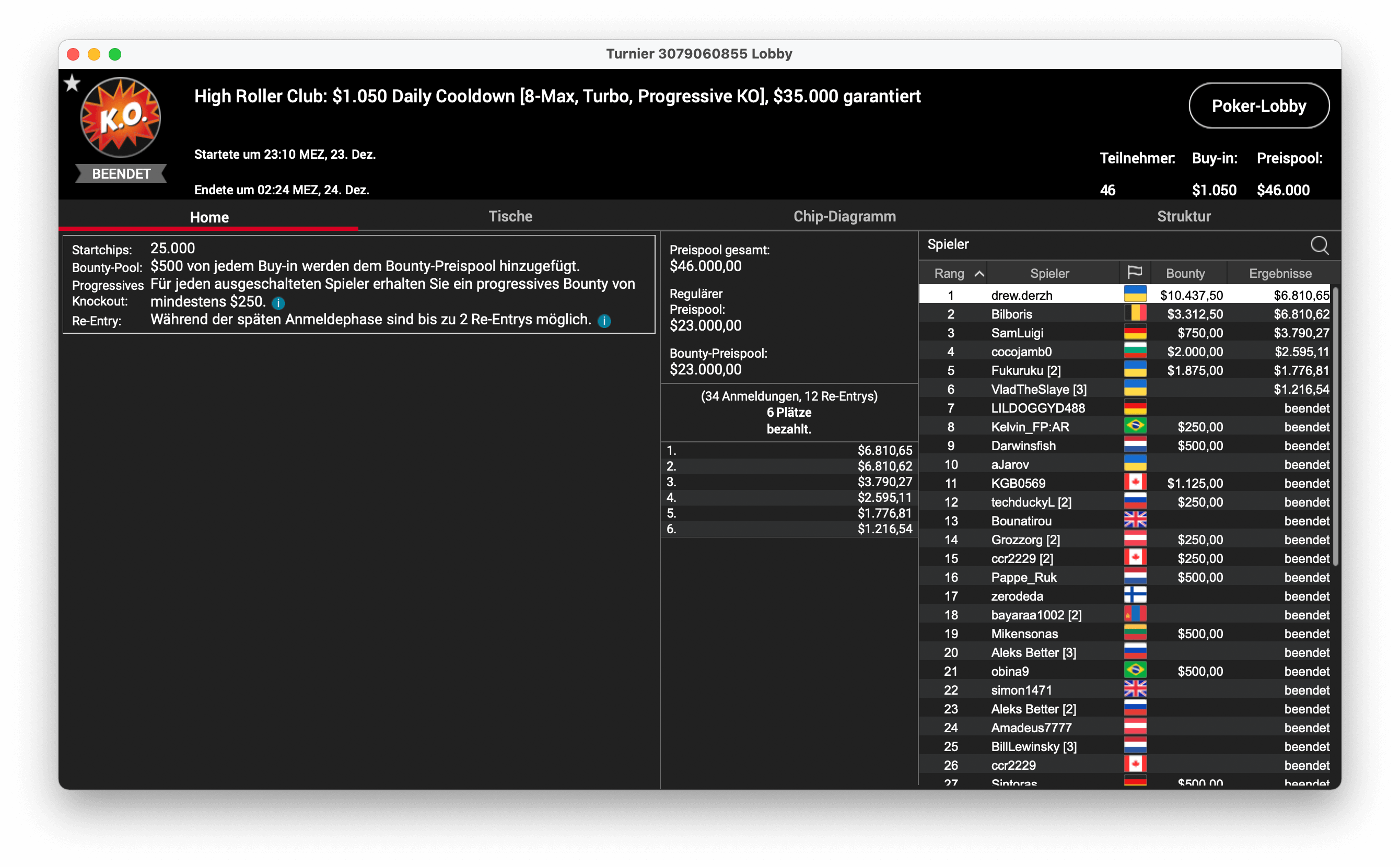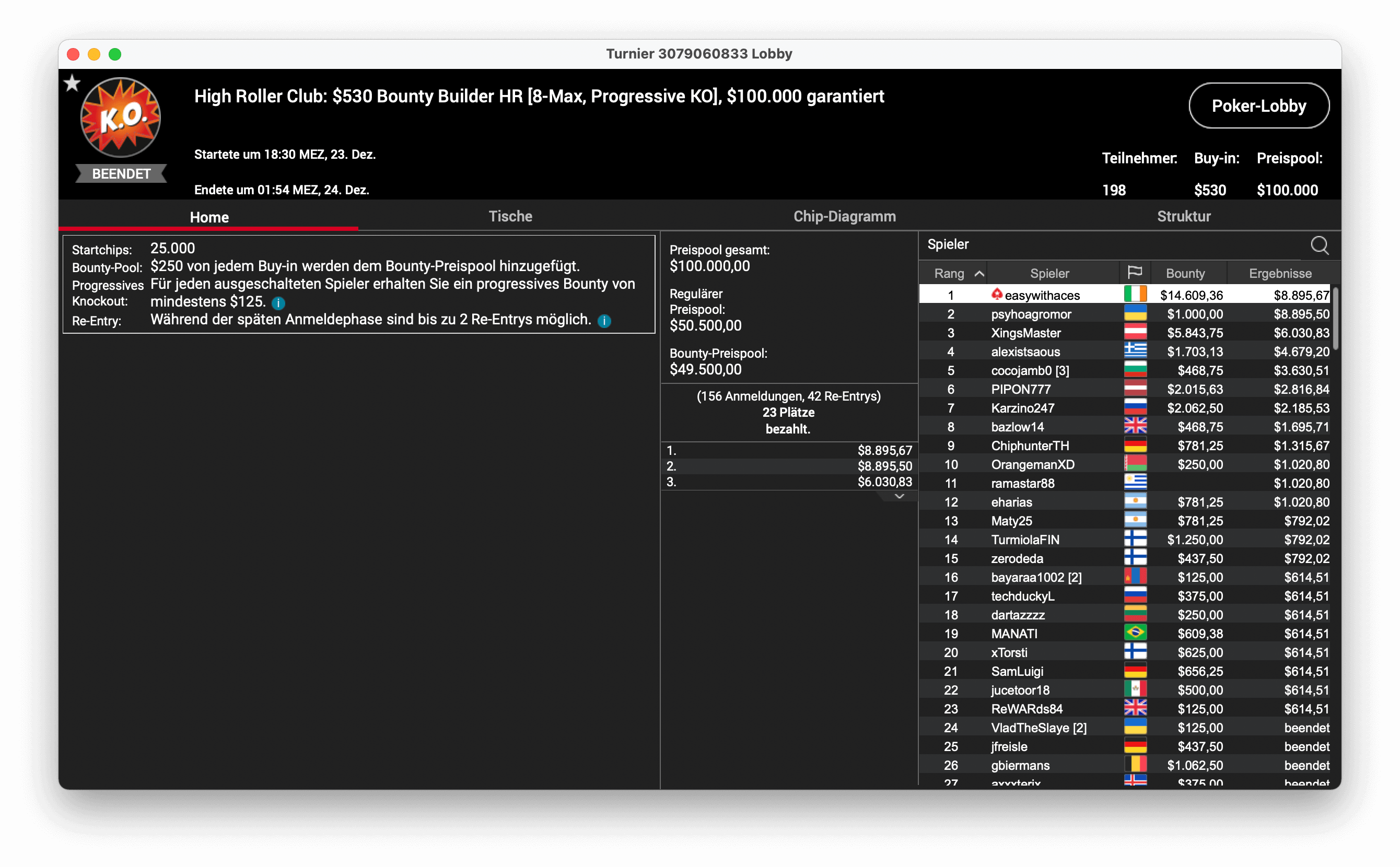 Am Tag vor Heiligabend gab es im High Roller Club nochmal eine Reihe von Turnieren in hohen Buy-In-Stufen und einige prominente Gewinner: Fintan „easywithaces“ Hand und Dominik Nitsche gewannen Turniere, „Sintoras“ verpasste den Turniersieg einmal knapp.