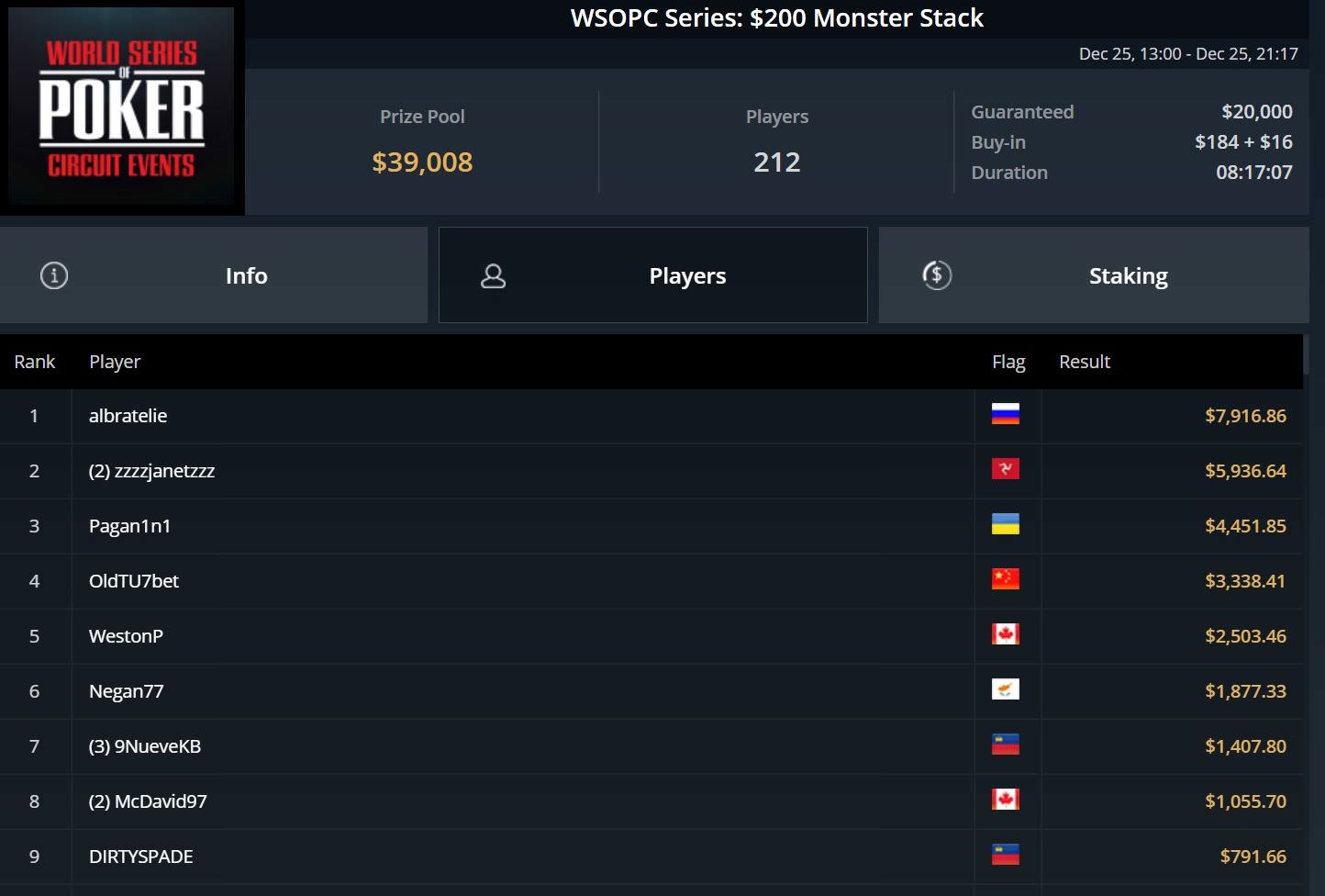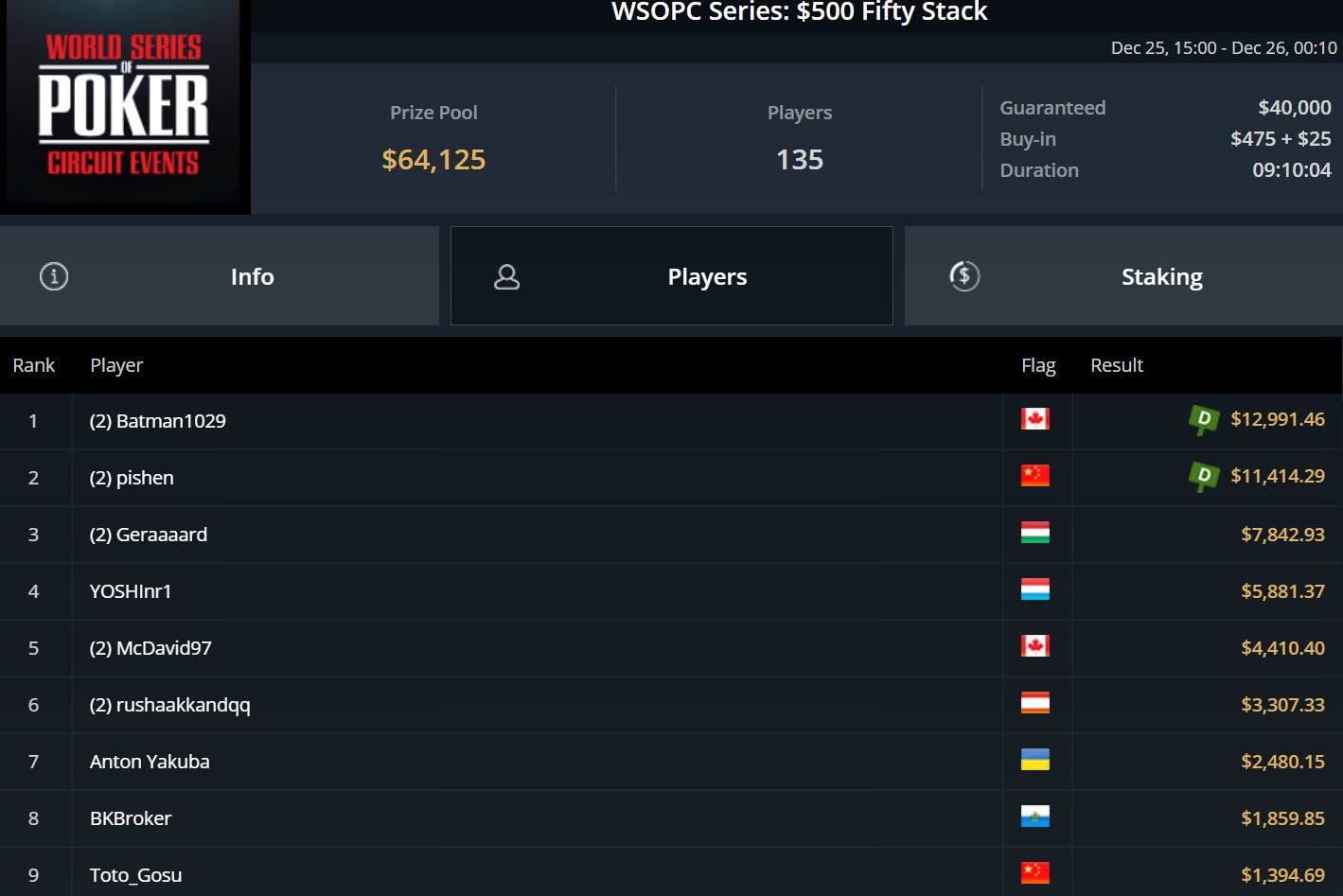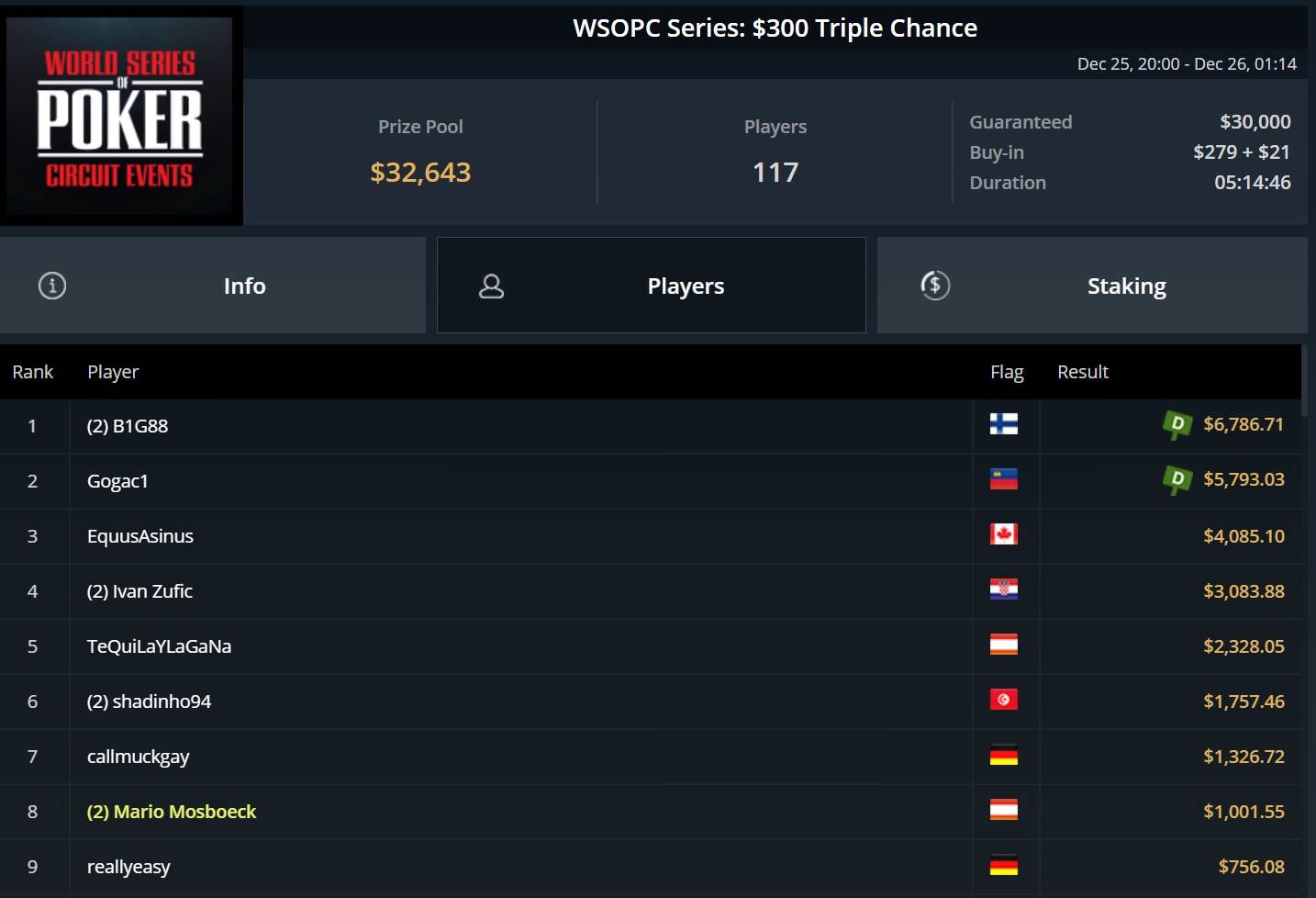 Bei der World Series of Poker Circuit Series auf GGPoker wurde auch am ersten Weihnachtsfeiertag fleißig gepokert und dabei holten die deutschsprachigen Spieler einige gute Ergebnisse.