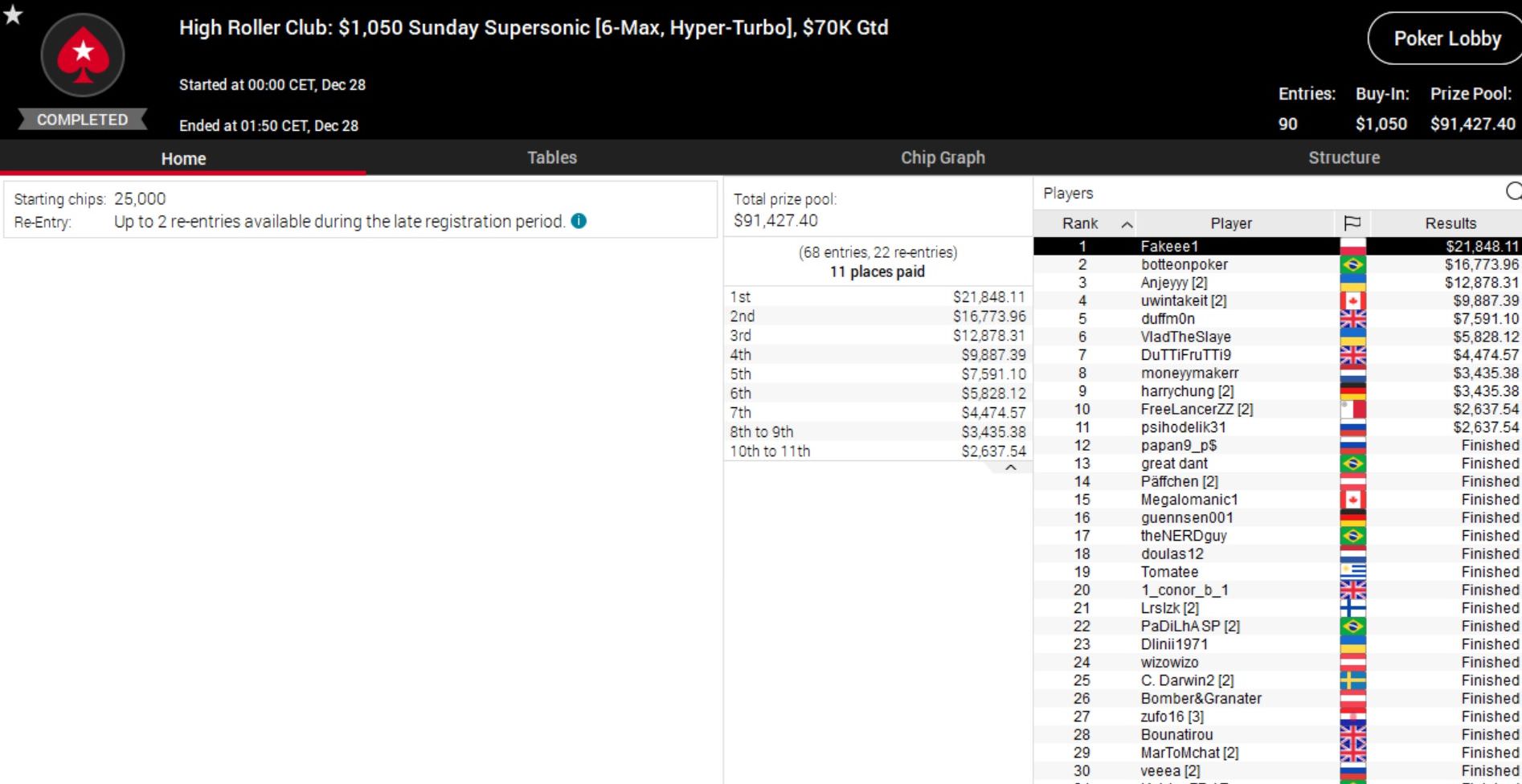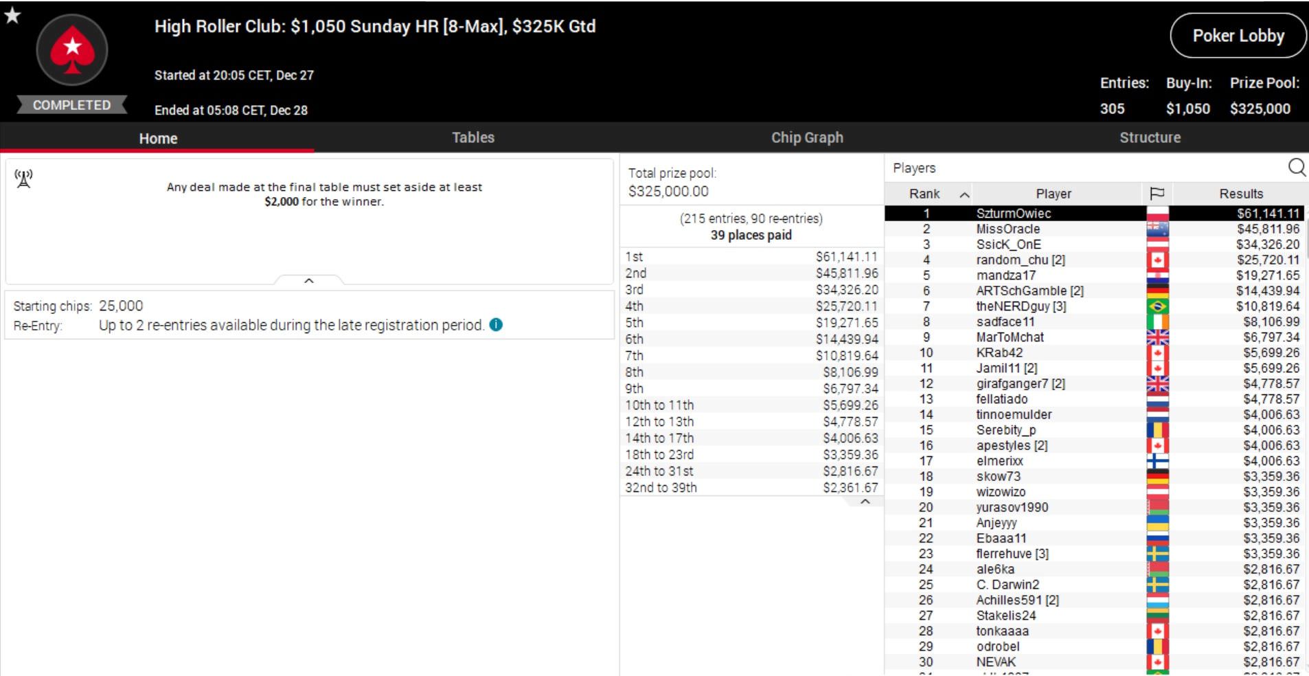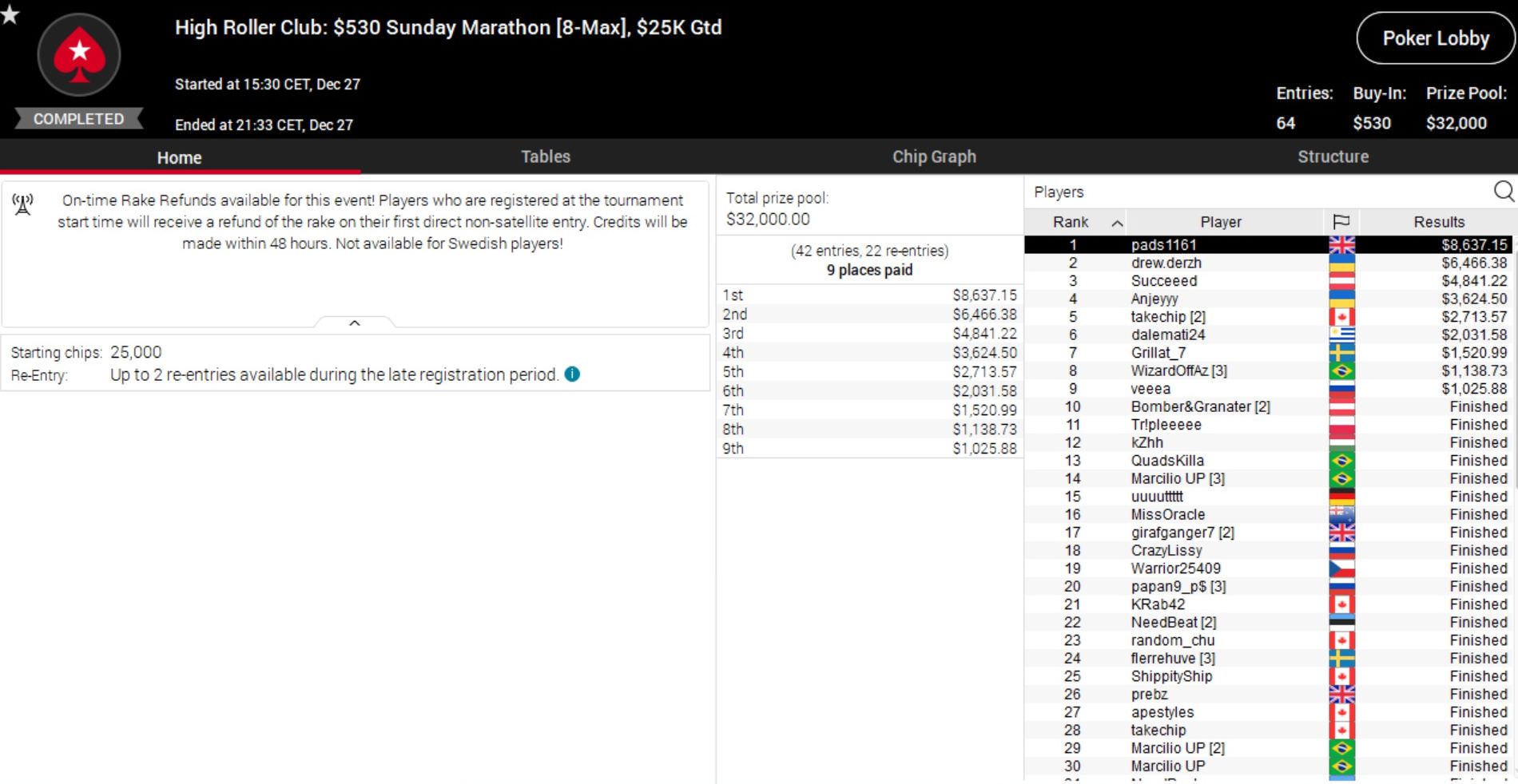 Jakob „Succeeed“ Miegel musste sich beim $530 Sunday Marathon nur „pads1161“ aus Großbritannien und „drew.derzh“ aus der Ukraine geschlagen geben und kassierte als Dritter knapp $5.000 Preisgeld.