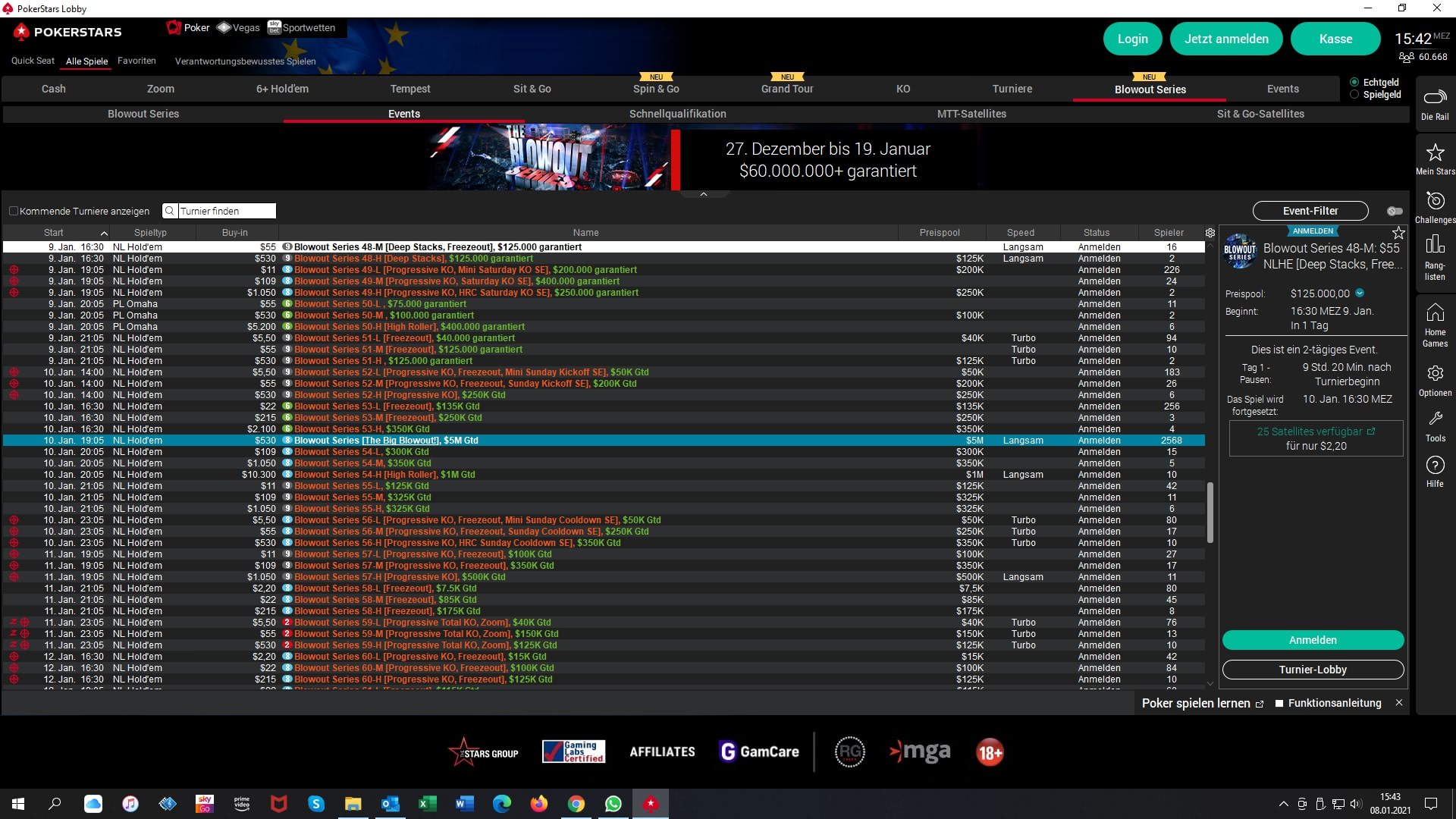 Am Freitag wurde bei der Blowout Series auf Pokerstars der Tag 11 gespielt. Hier standen insgesamt 15 Entscheidungen auf dem Programm, bei denen unglaubliche 87.635 Entries und $3.378.715 an Preisgeldern zusammen kamen. Außerdem starteten drei neue Events mit Tag 1.