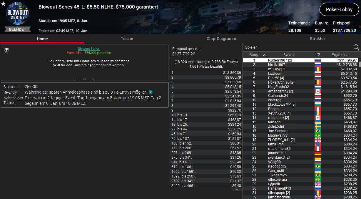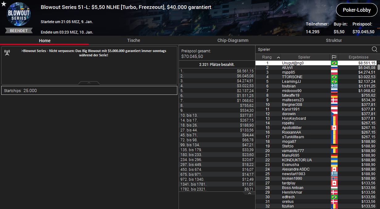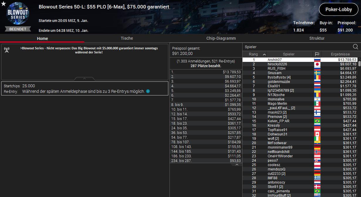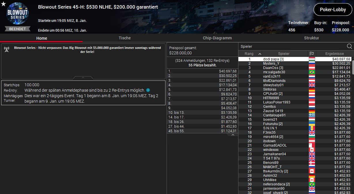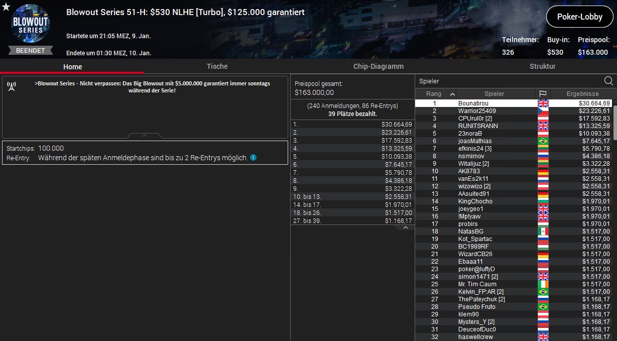 Viele gute Ergebnisse gab es am Samstag bei der Blowout Series von PokerStars nicht für die deutschsprachigen Spieler, ein Sieg war dennoch dabei, diesmal für Dominik Bounatirou Nitsche.