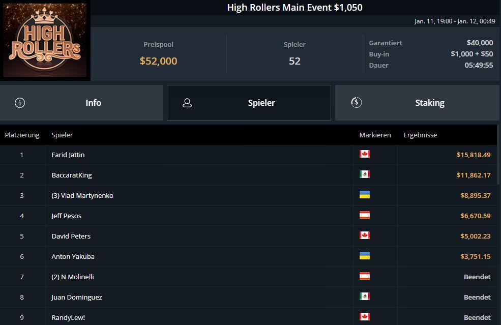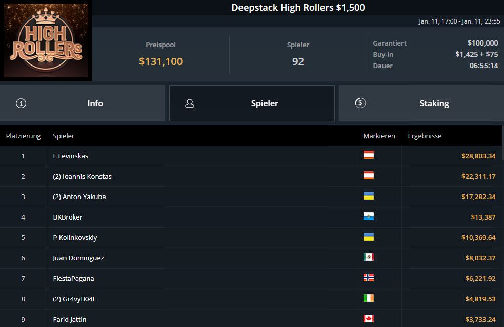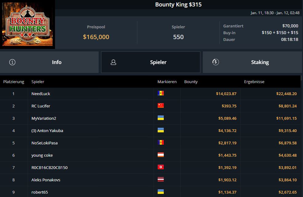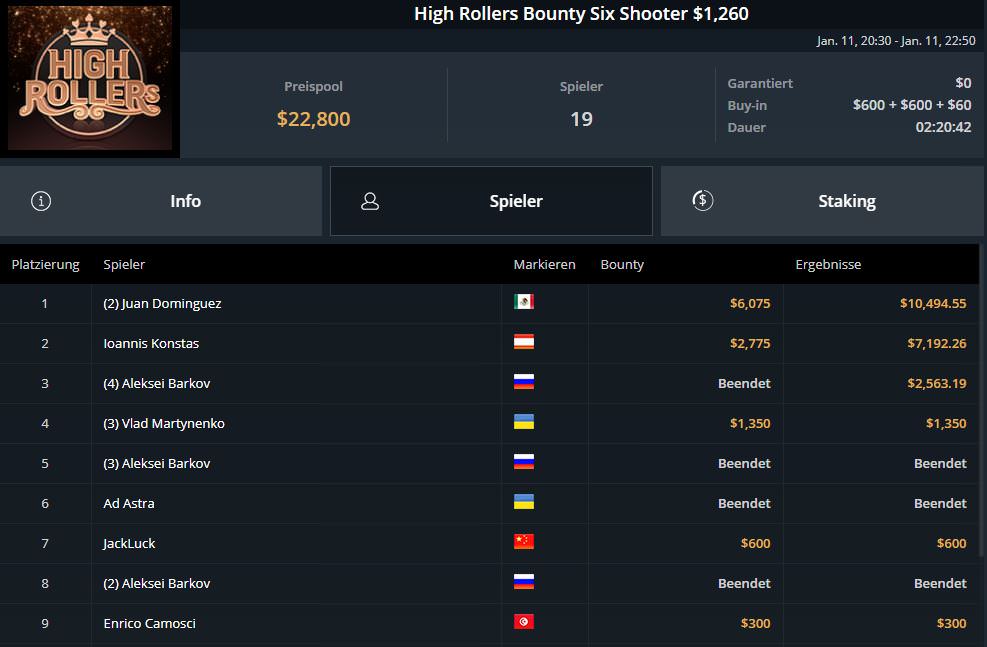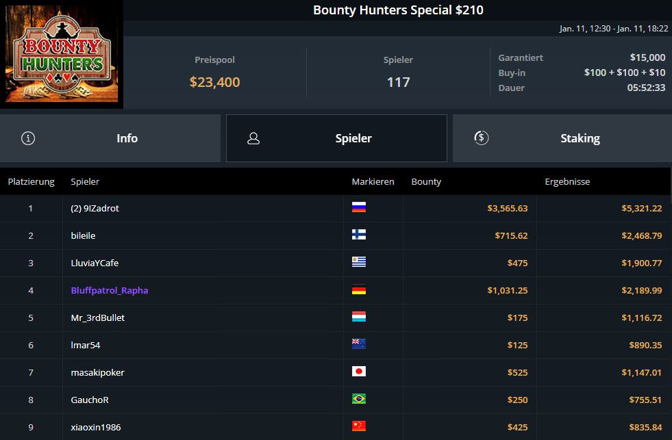 Overall übertraf er damit sogar die $18.450,59, die Nolte als Runner-up beim $525 Bounty Hunters HR ausbezahlt bekam. Den Sieg und insgesamt $30.472,89 holte hier Shyngis Satubayev aus Kasachstan.