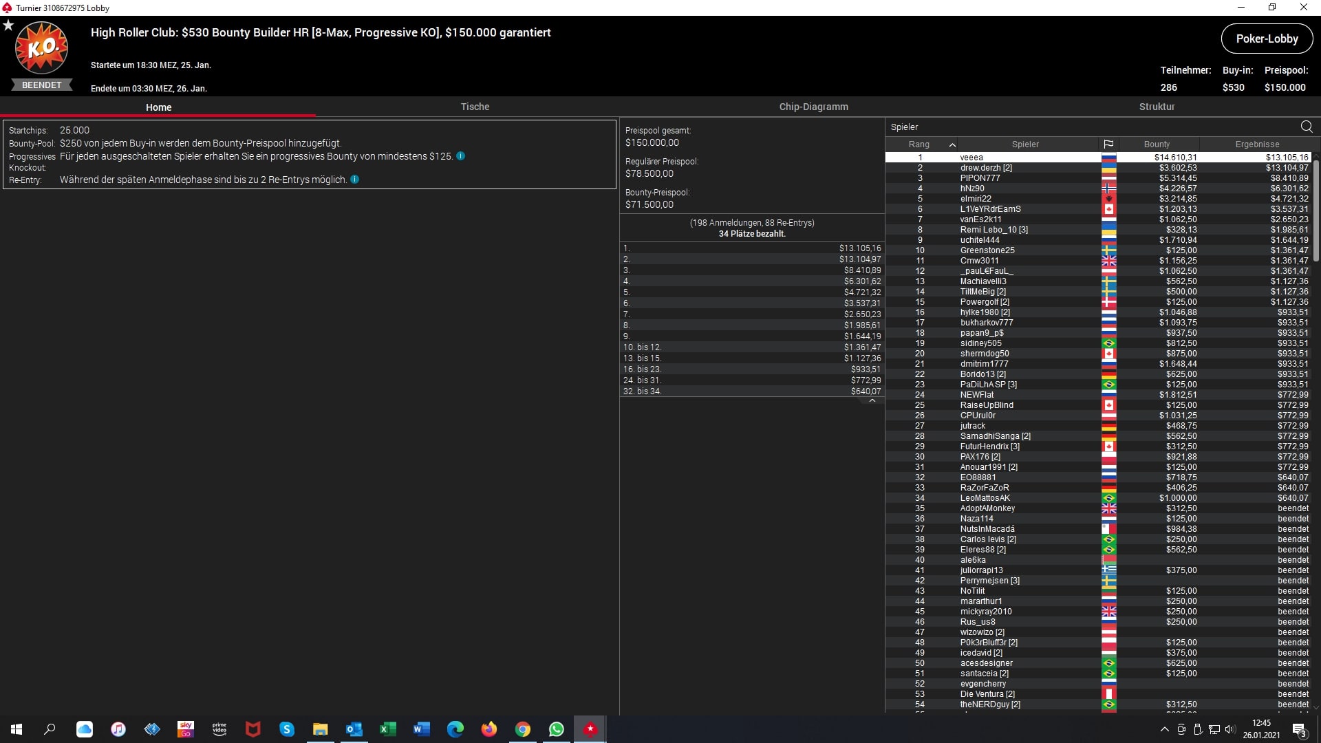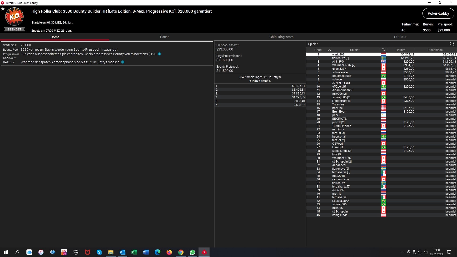 Dann gab es noch einen Sieg für „wario203“ aus den Niederlanden beim $530 Bounty Builder High Roller Late-Edition. Er durfte sich über $3.405 + $5.203 Bounties freuen.