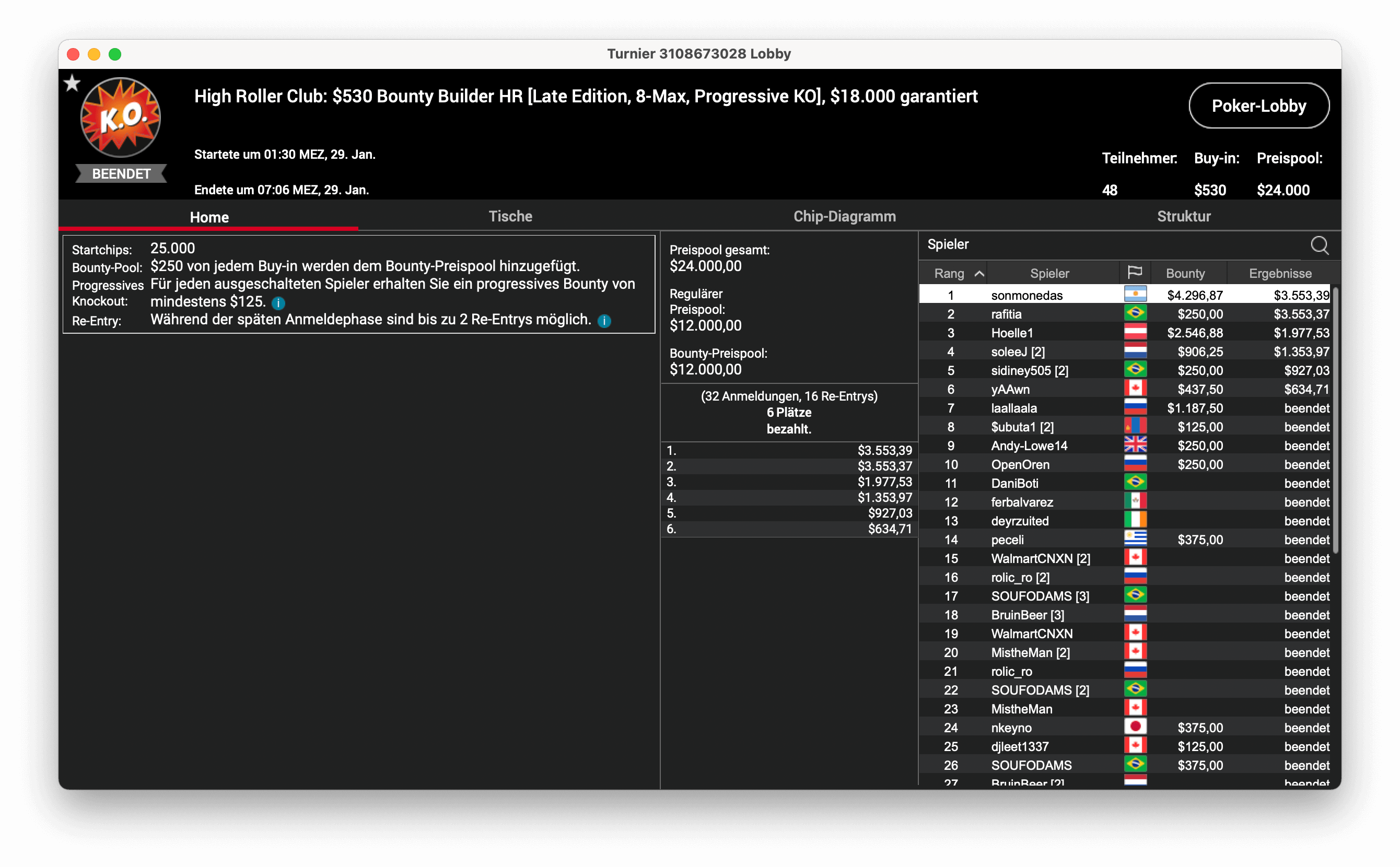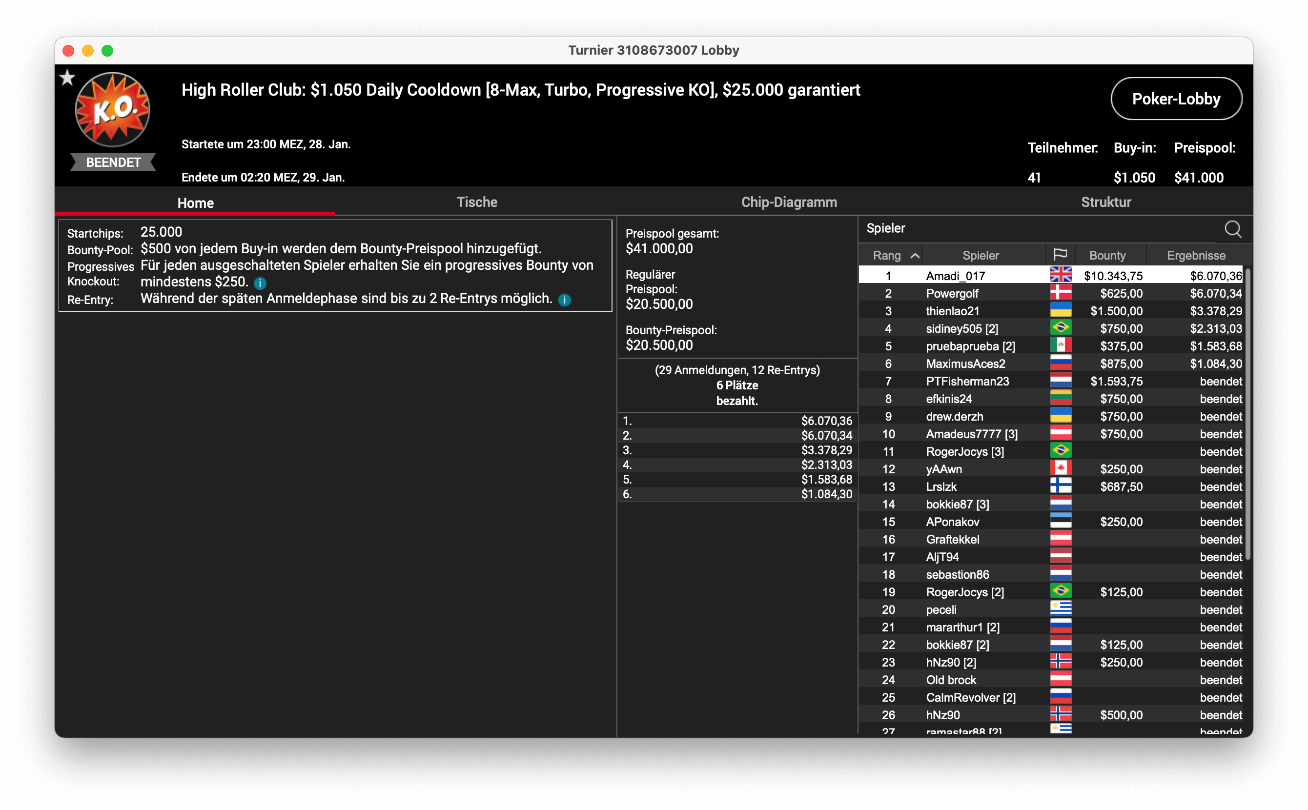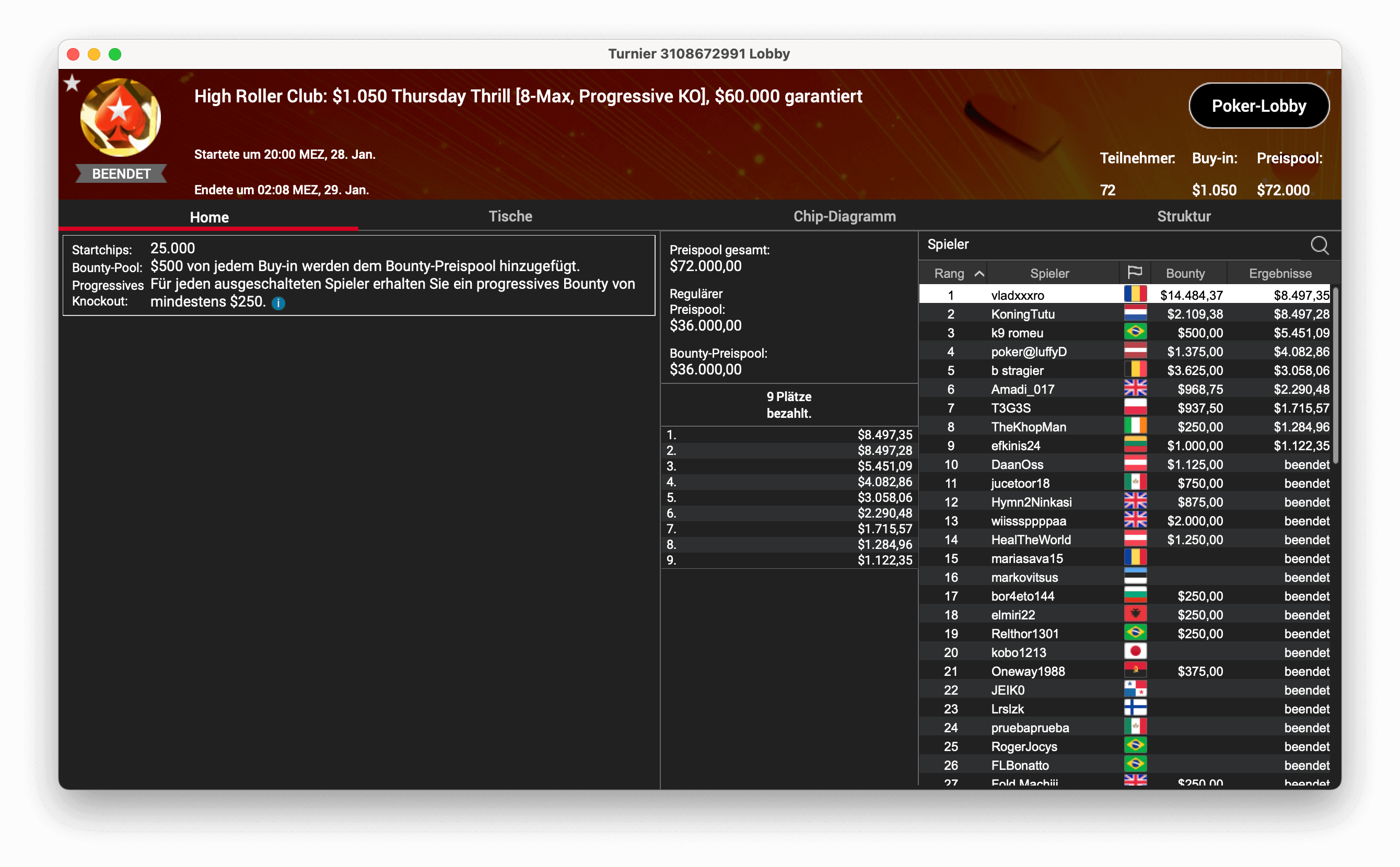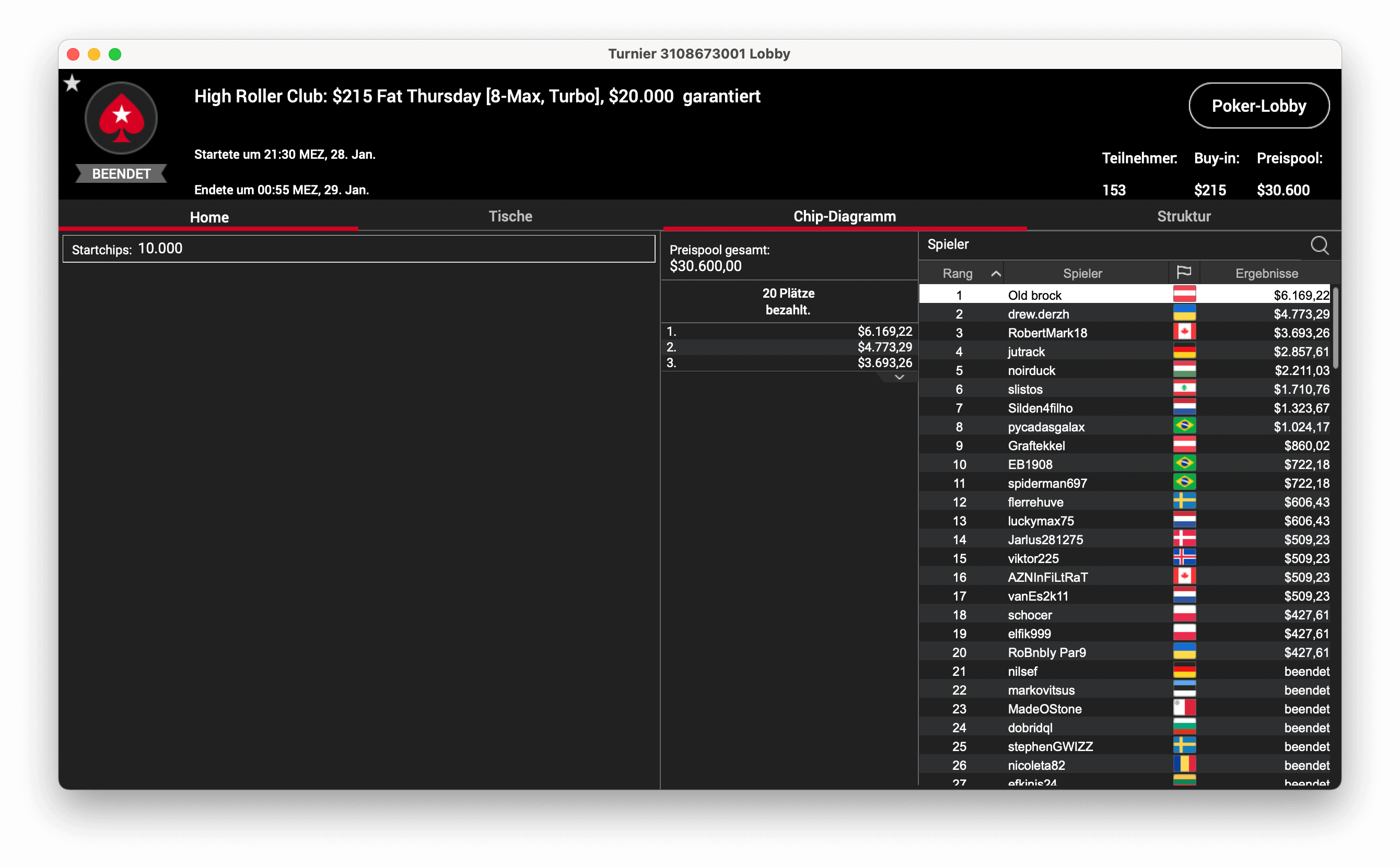 Gestern wurden im High Roller Club auf PokerStars einige Turniere gespielt. Es gab einen DACH-Sieg und ein paar prominente internationale Gewinner.