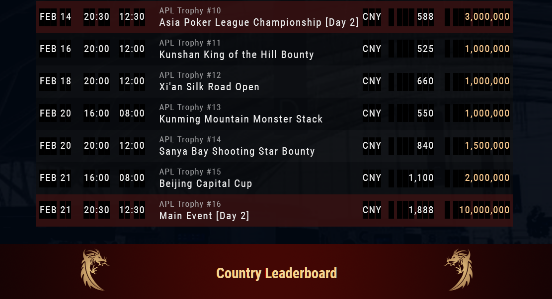 Bei der seit 1.Februar stattfindenden Asian Poker League garantiert der Anbieter aus Fernost Preisgelder von 80 Millionen Yuan oder umgerechnet mehr als €10 Millionen Euro.