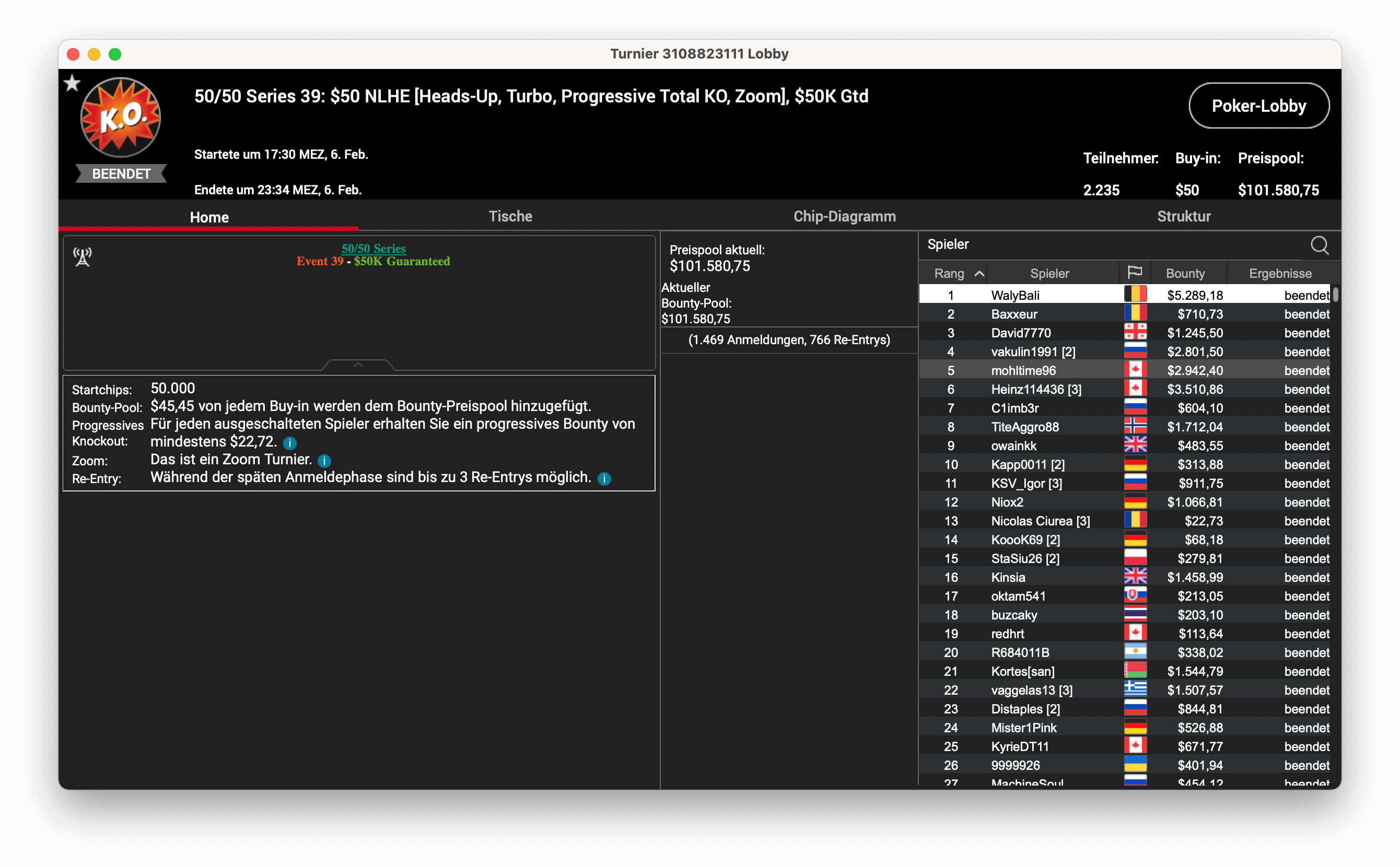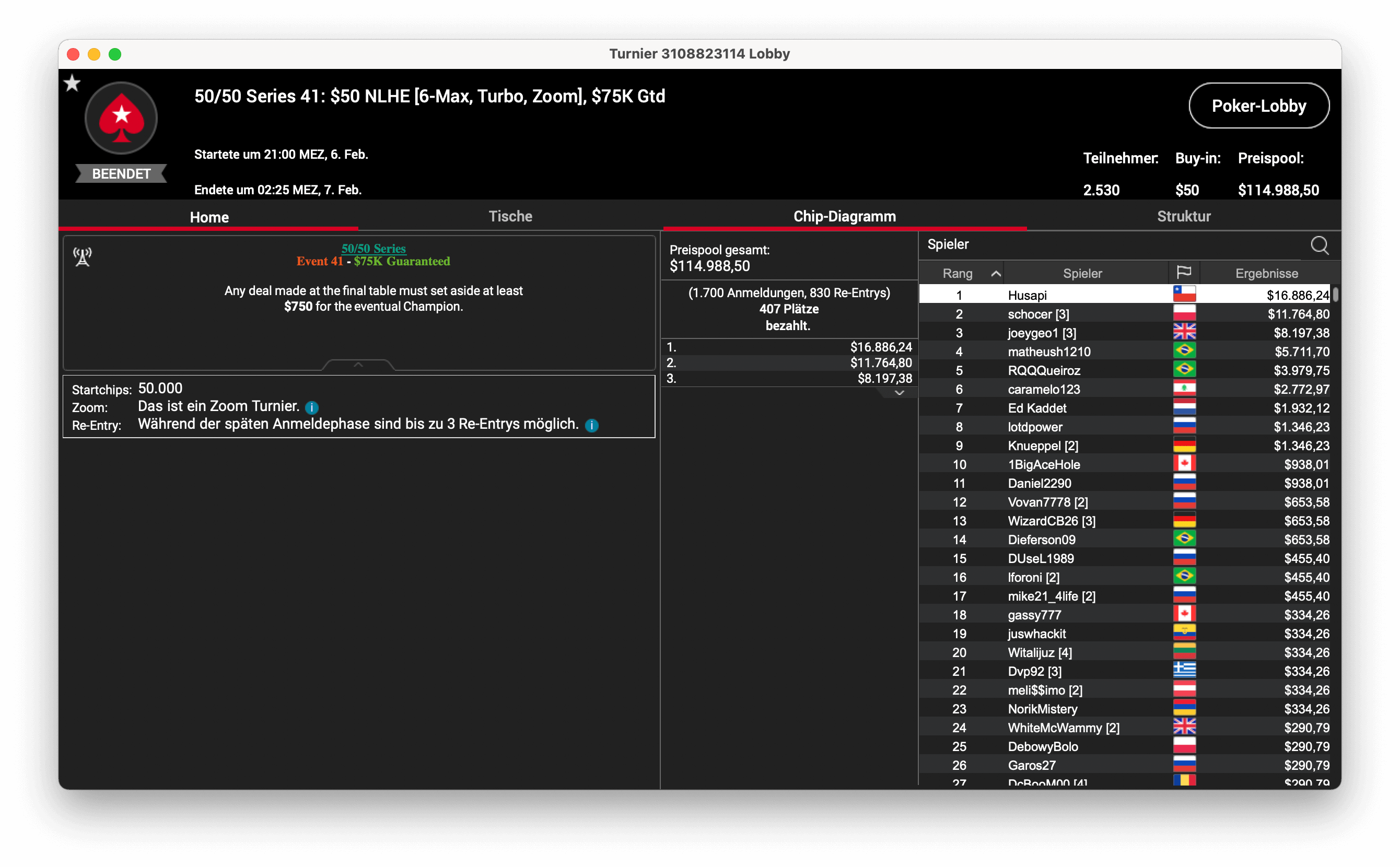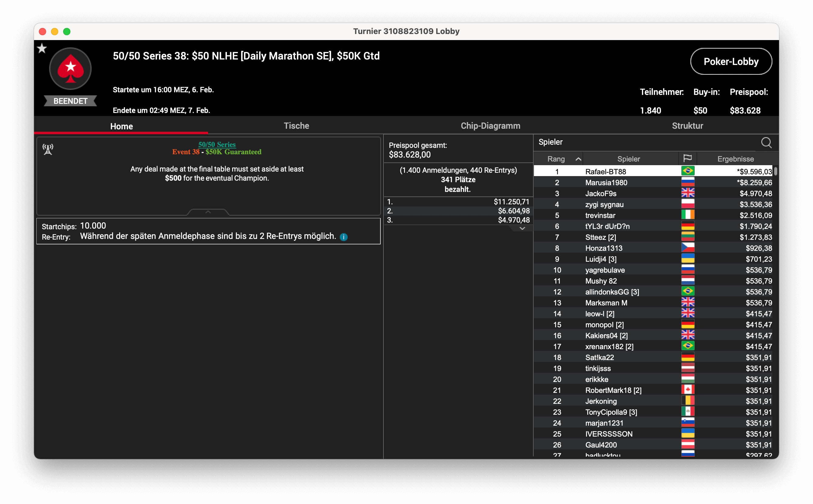 Die 50/50 Series auf PokerStars, bei der es 50 Turniere mit $50 Buy-In gibt, läuft derzeit auf Hochtouren. Gestern gingen wieder sechs Turniere über den virtuellen Filz, die DACH-Spieler konnten nur eine Runner-Up-Platzierungen erreichen.