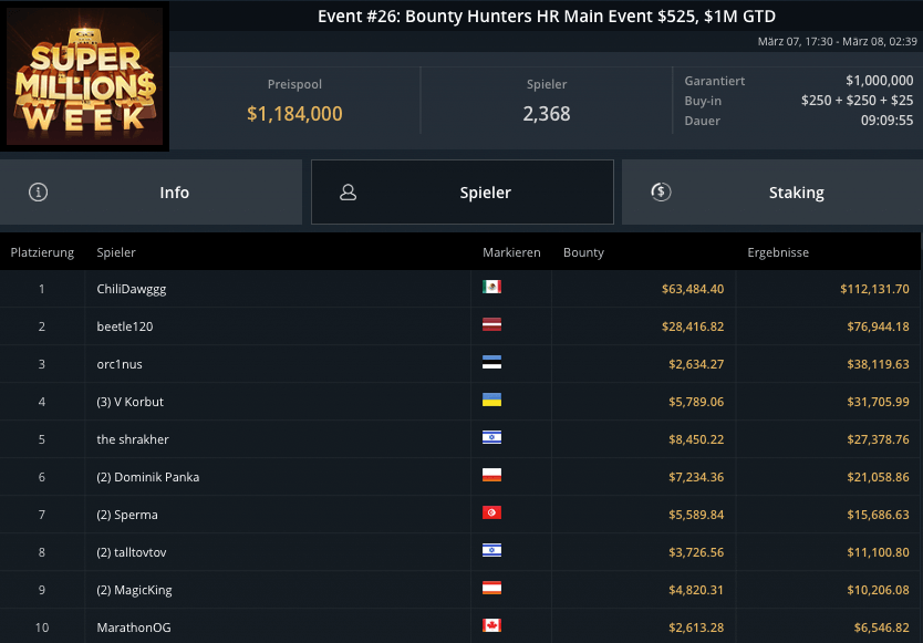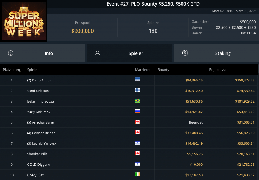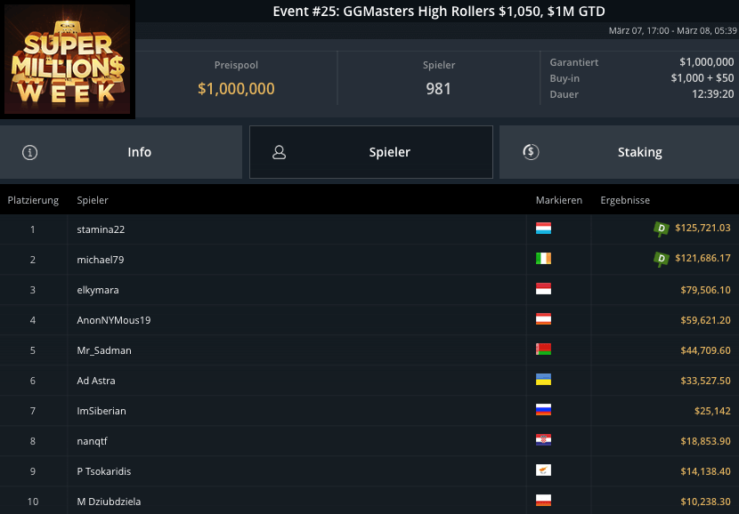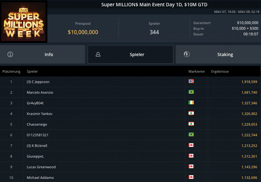 Die Super MILLION$ Week auf GGPoker hatte gestern einige Höhepunkte und Side-Events und einige krasse Preispools und bekannte Gewinner!